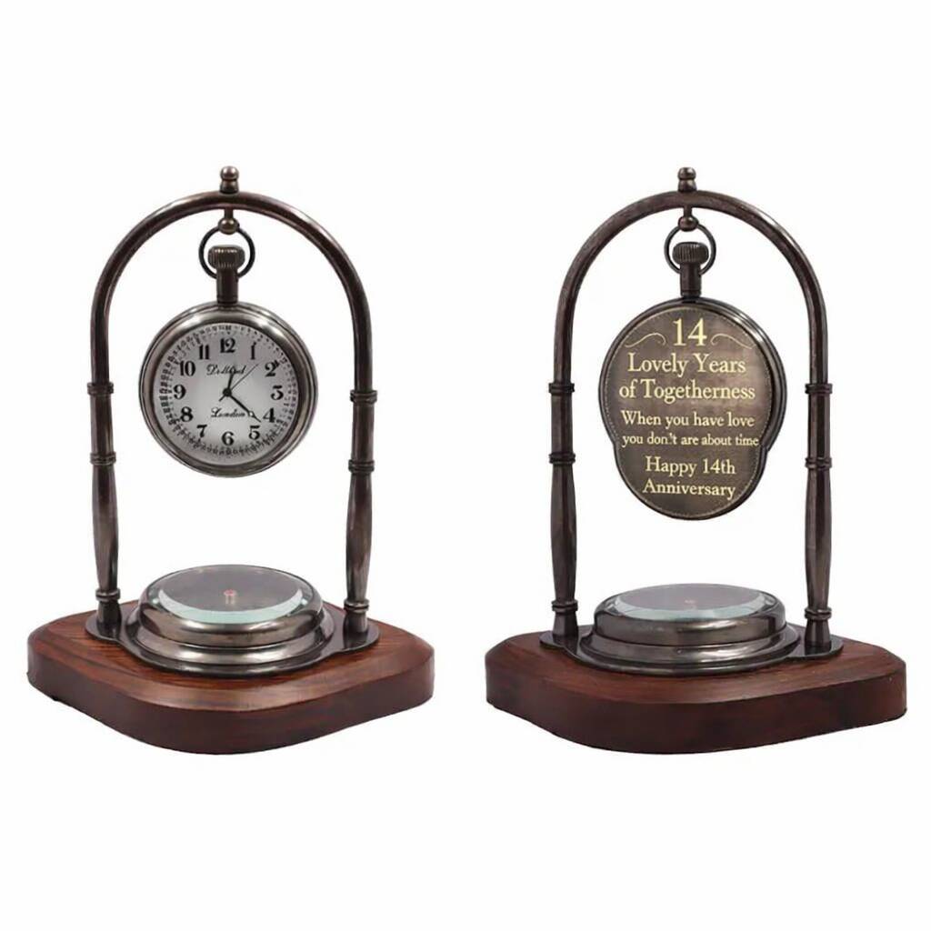 Personalised Bronze 14th Anniversary Desk Clock With Compass