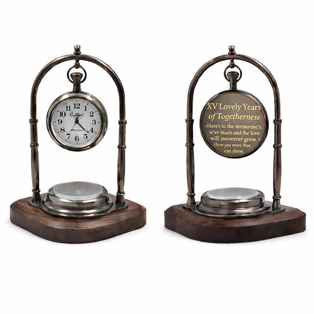 Personalised Bronze 15th Anniversary Desk Clock With Compass