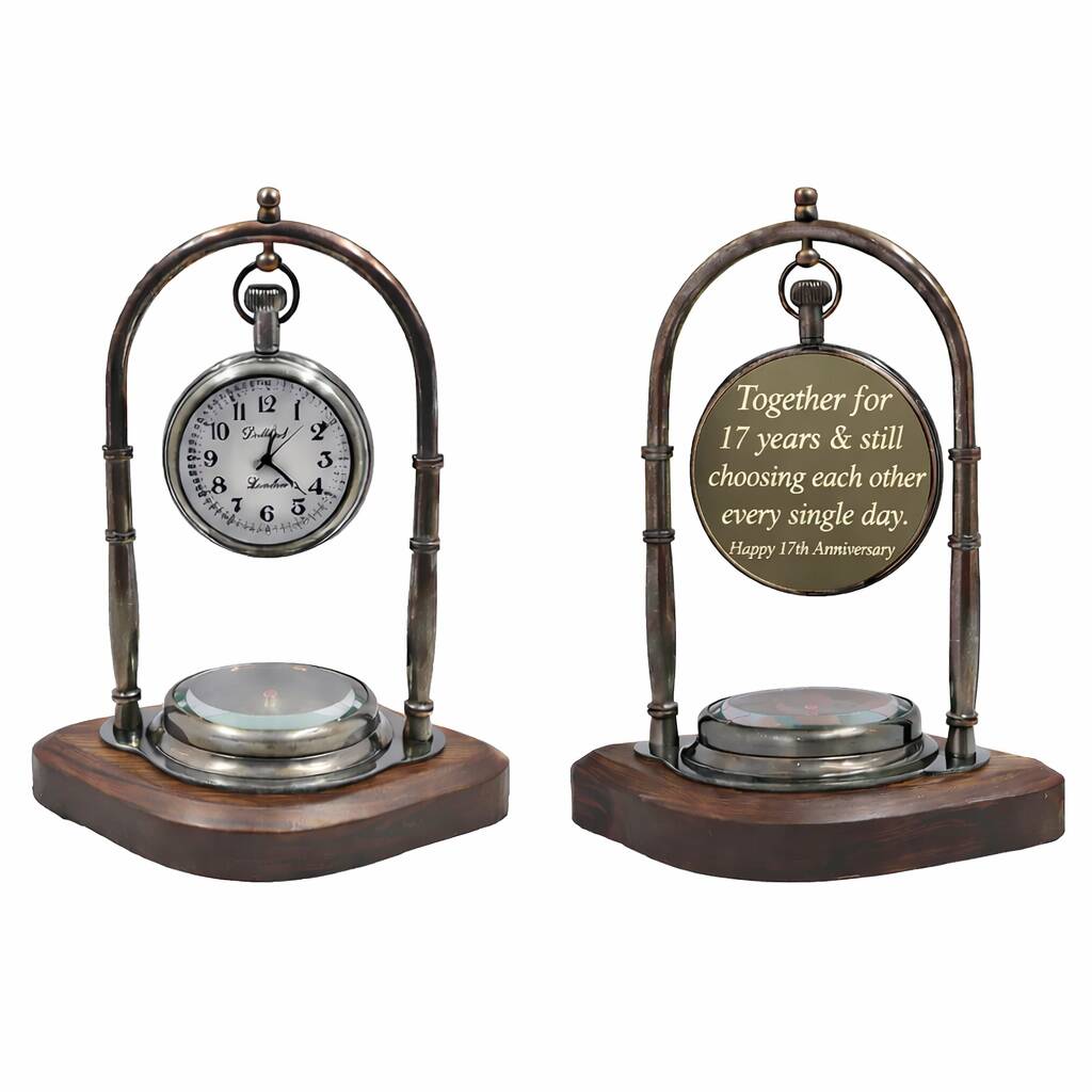 Personalised Bronze 17th Anniversary Desk Clock With Compass