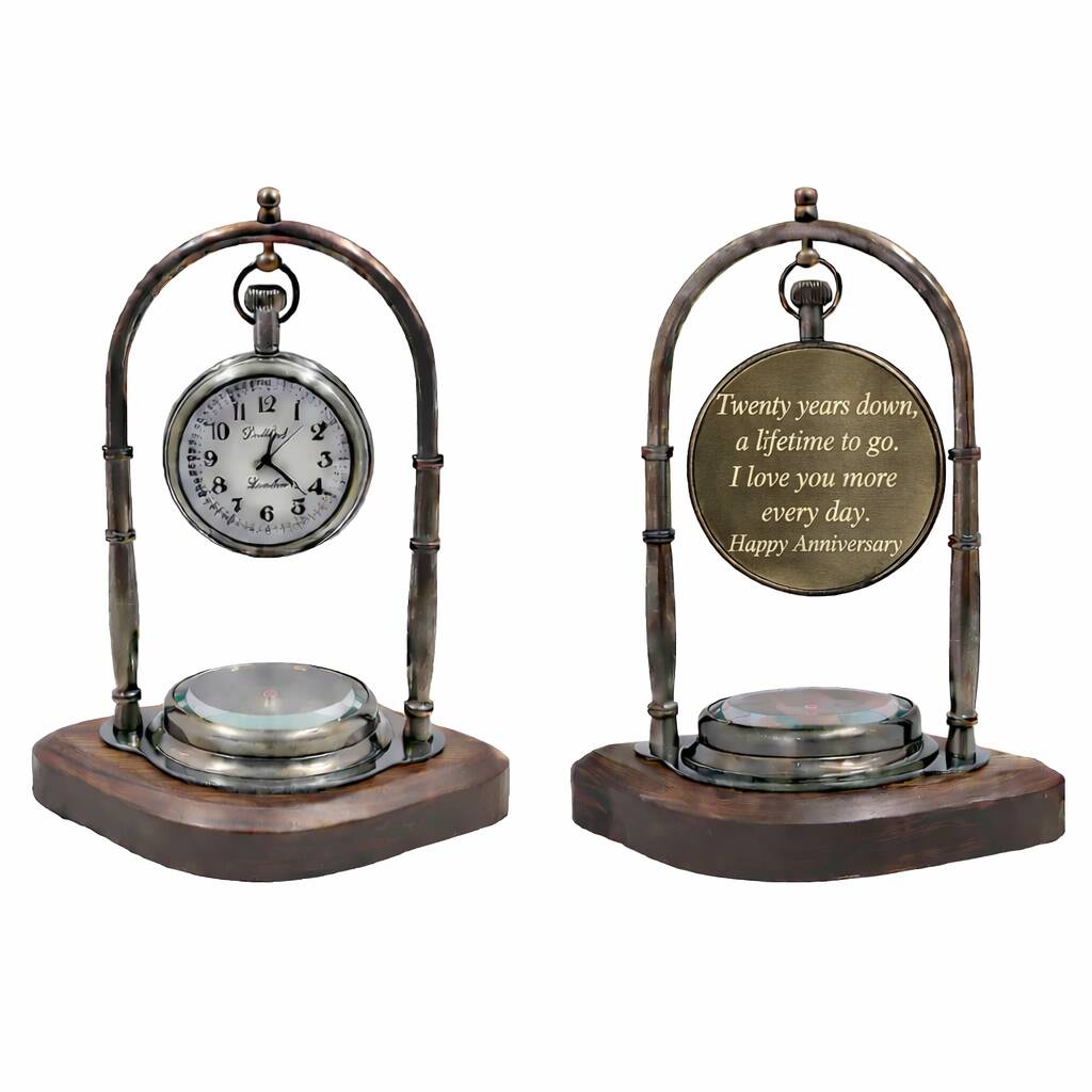 Personalised Bronze 20th Anniversary Desk Clock With Compass