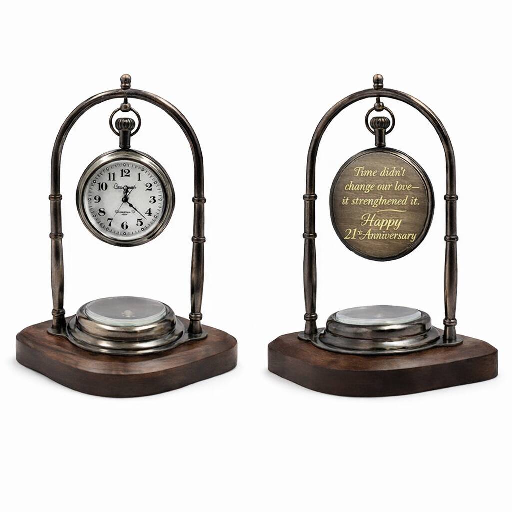 Personalised Bronze 21st Anniversary Desk Clock With Compass
