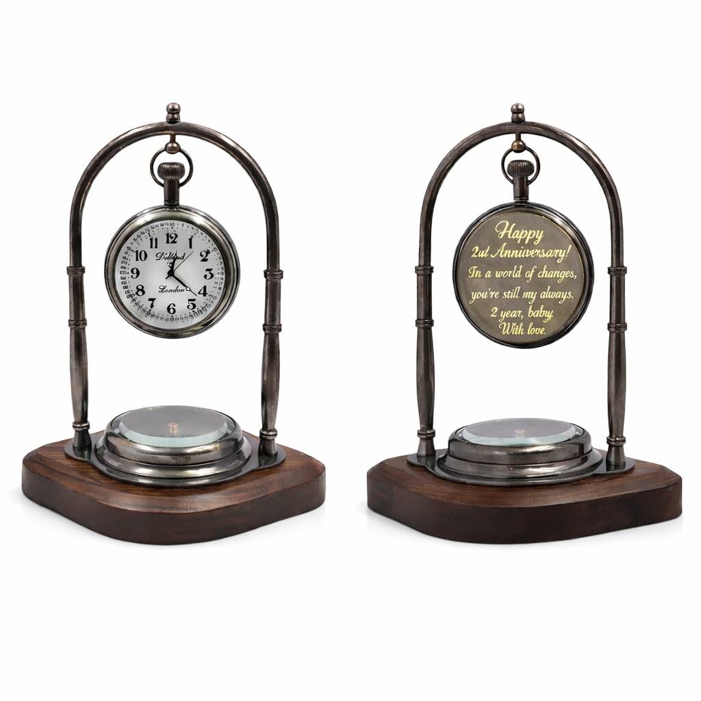 Personalised Bronze 2nd Anniversary Desk Clock With Compass