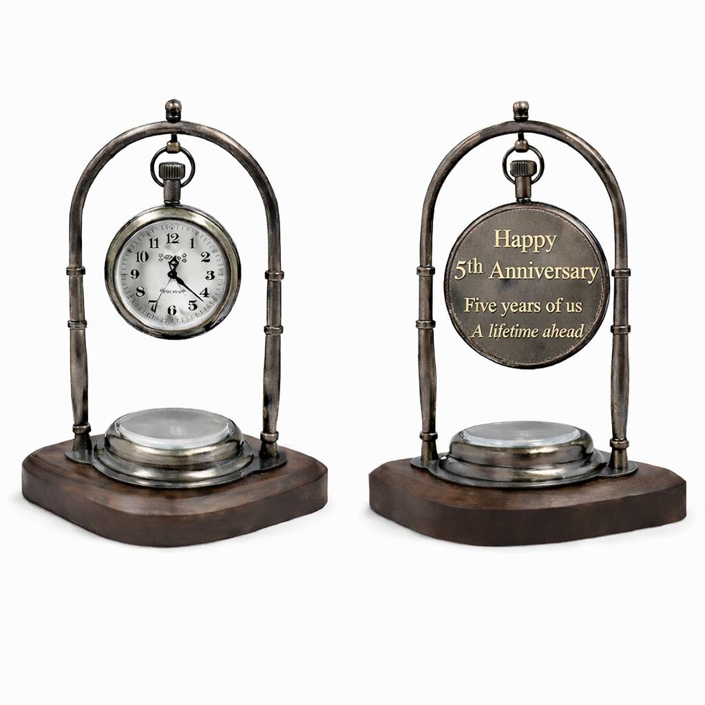 Personalised Bronze 5th Anniversary Desk Clock With Compass