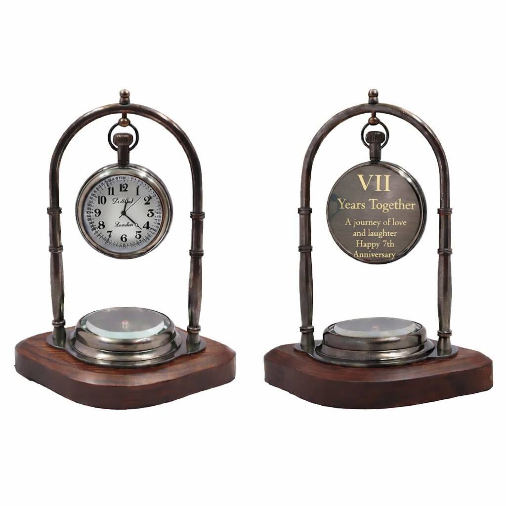 Personalised Bronze 7th Anniversary Desk Clock With Compass