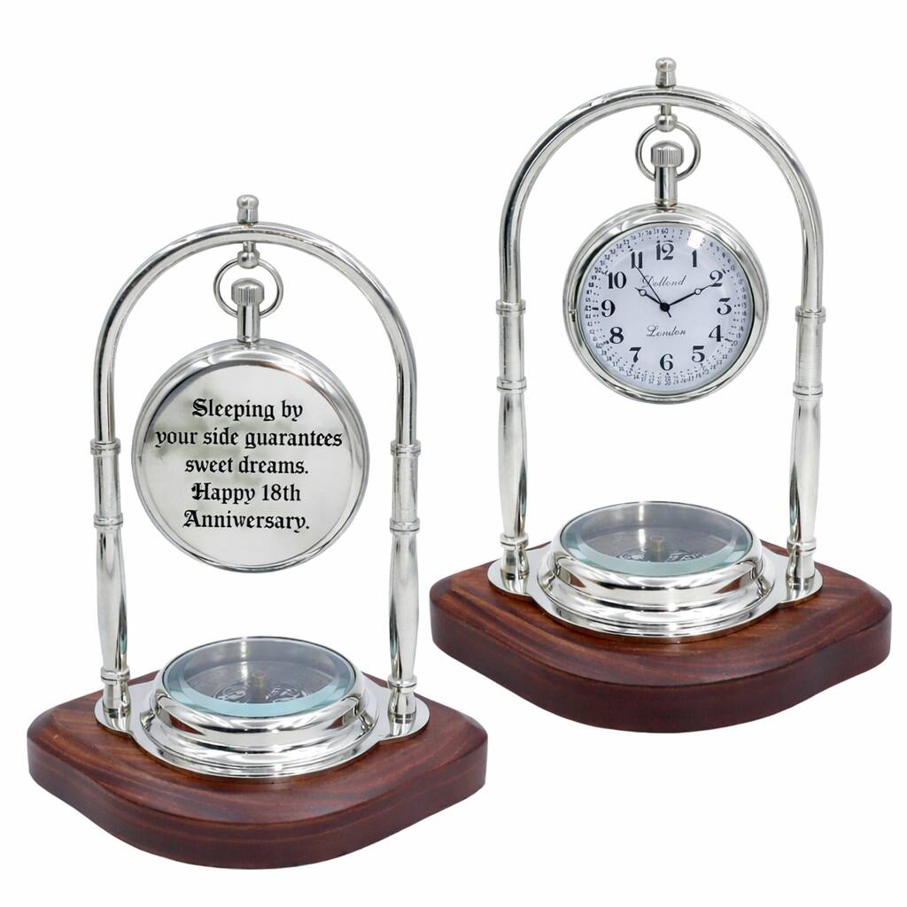 Personalised Chrome 18th Anniversary Desk Clock With Compass