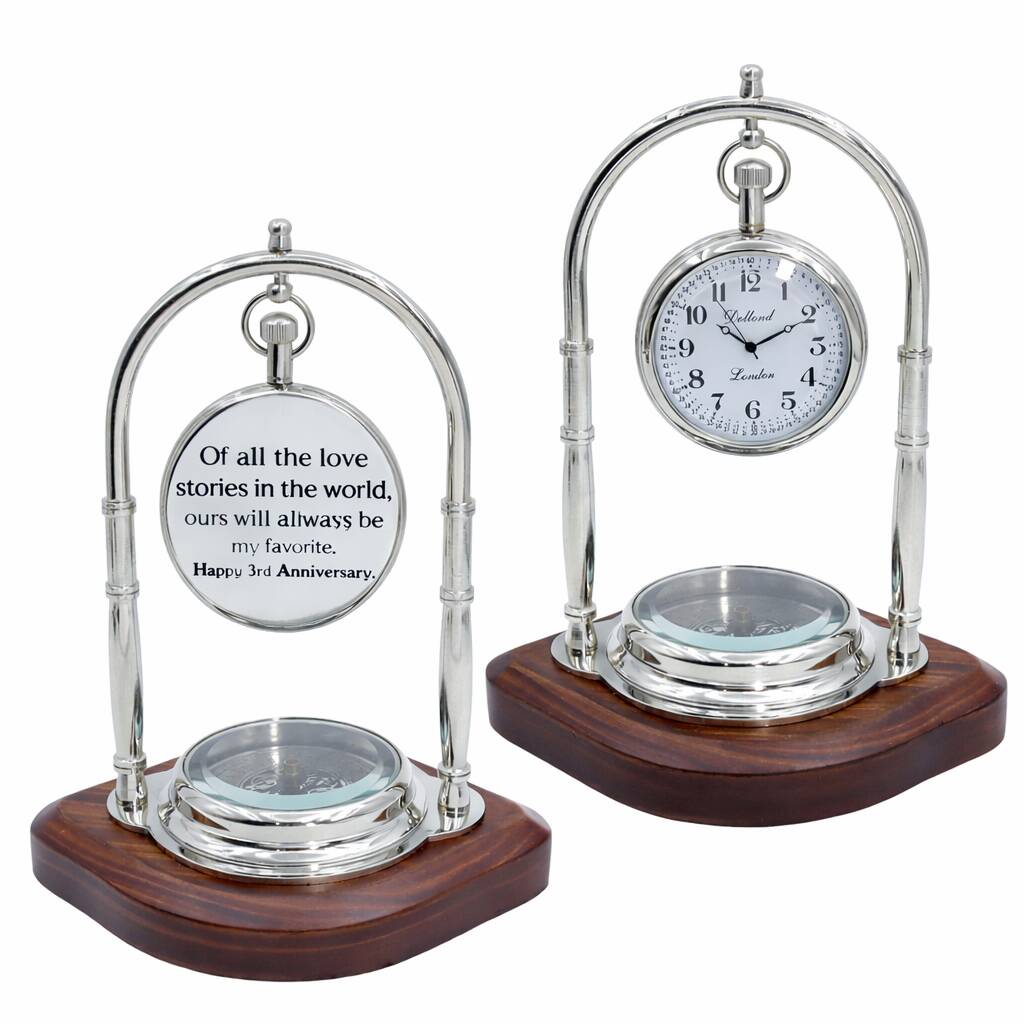 Personalised Chrome 3rd Anniversary Desk Clock With Compass