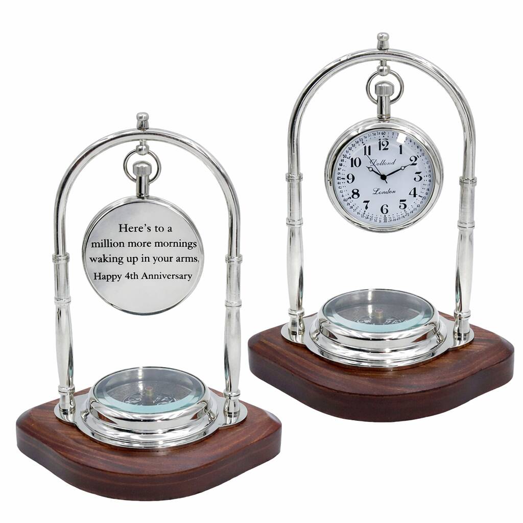 Personalised Chrome 4th Anniversary Desk Clock With Compass