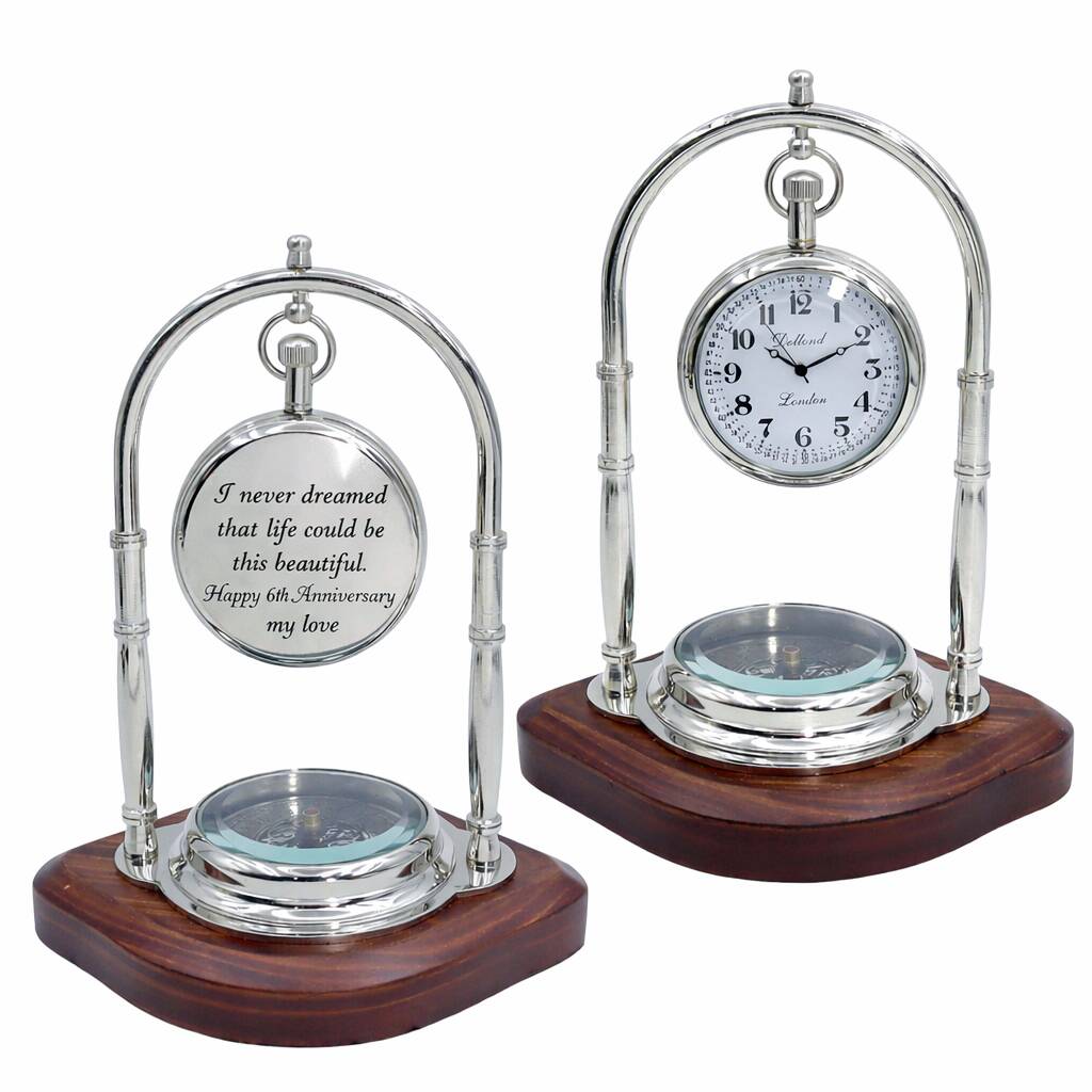 Personalised Chrome 6th Anniversary Desk Clock With Compass