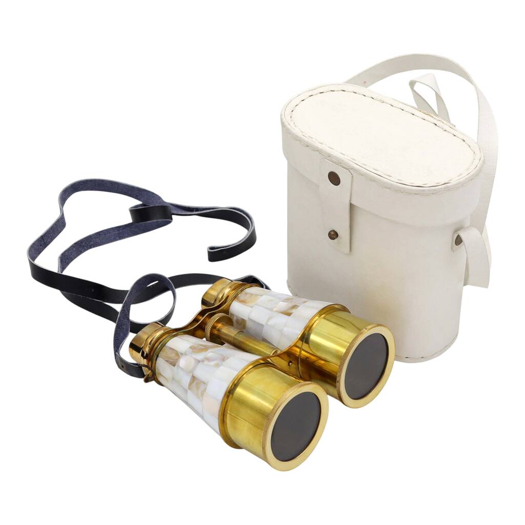 Personalised Mother Of Pearl Binoculars With White Leather Case