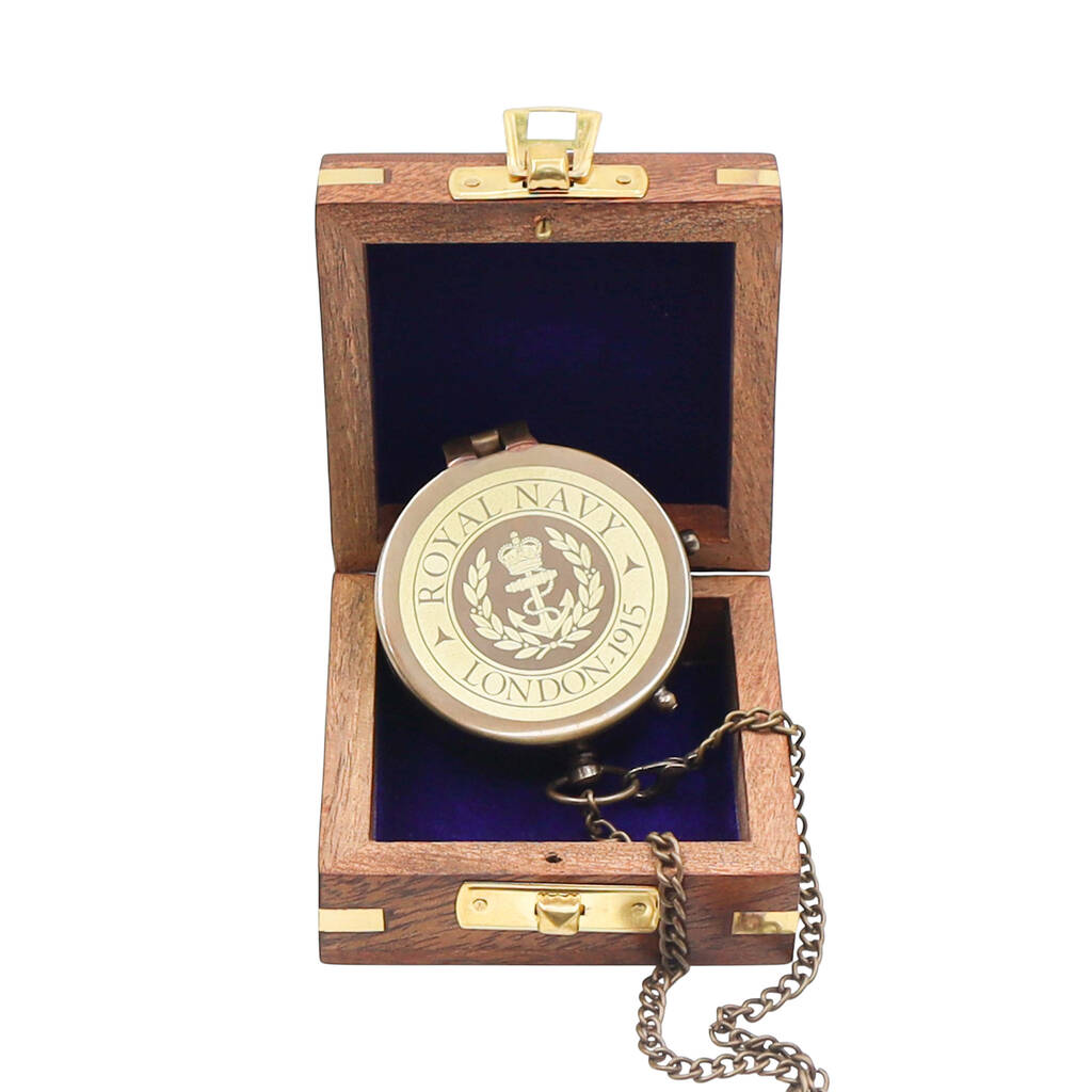 Royal Navy Compass With Wooden Box Or Leather Case