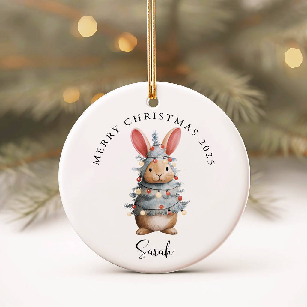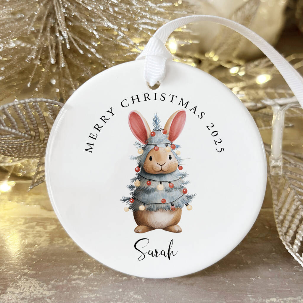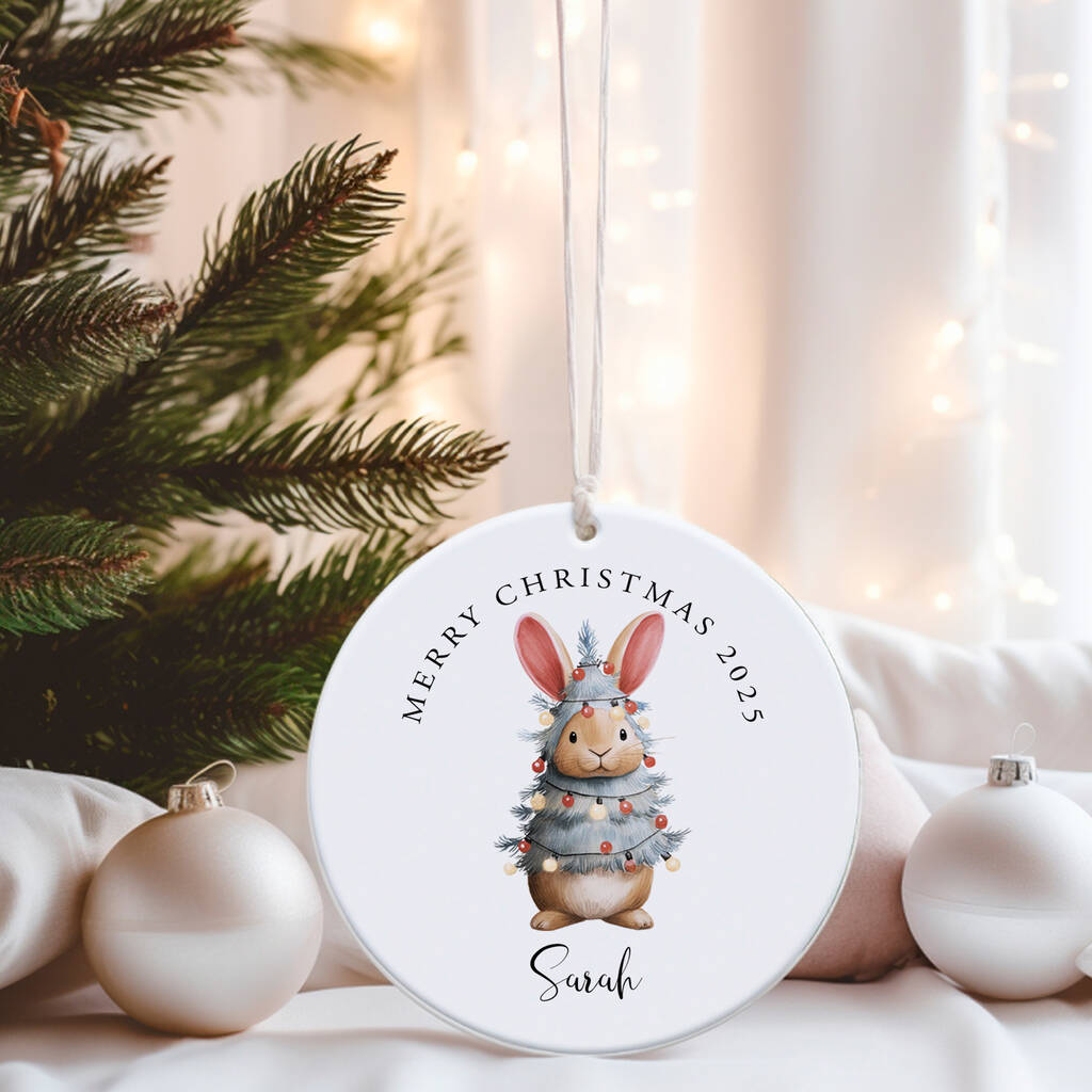 Christmas Ceramic Bauble Cute Bunny Wrapped In Lights