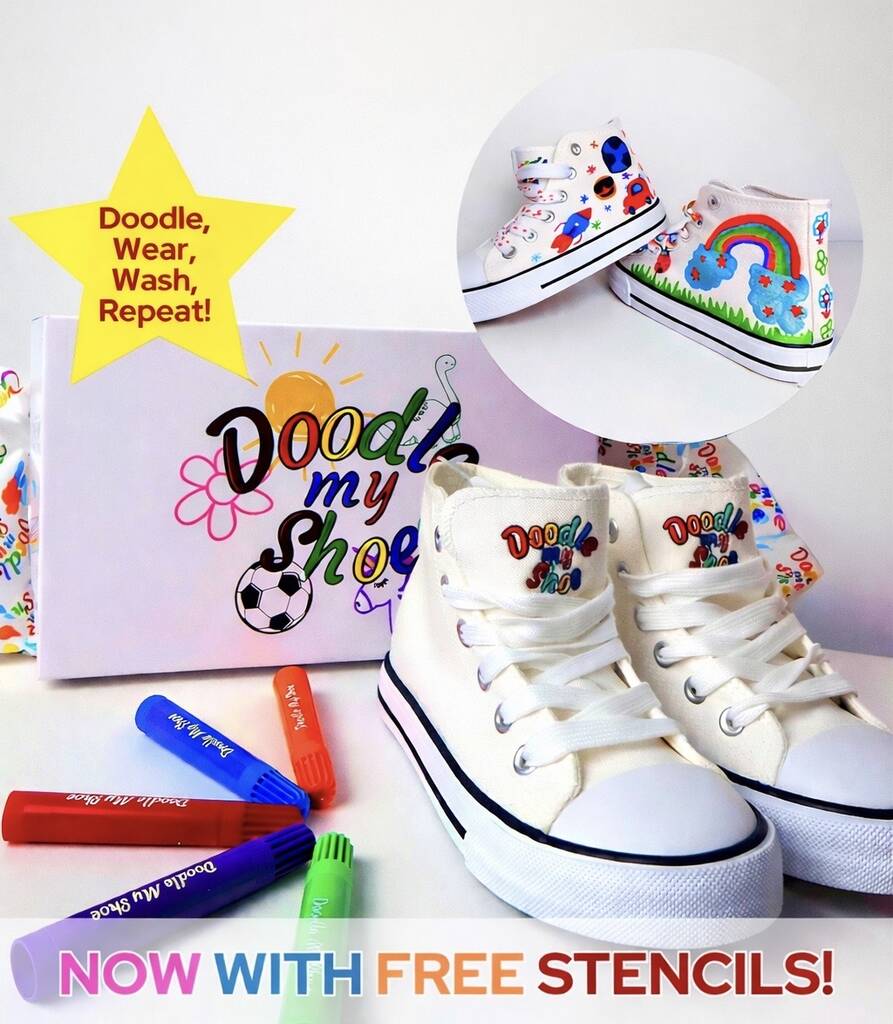 Doodle My Shoe, Customise Your Own Trainers! The UK 'S 1st Doodle And Wash Kids Shoes/ Trainers! Includes Free Stencils