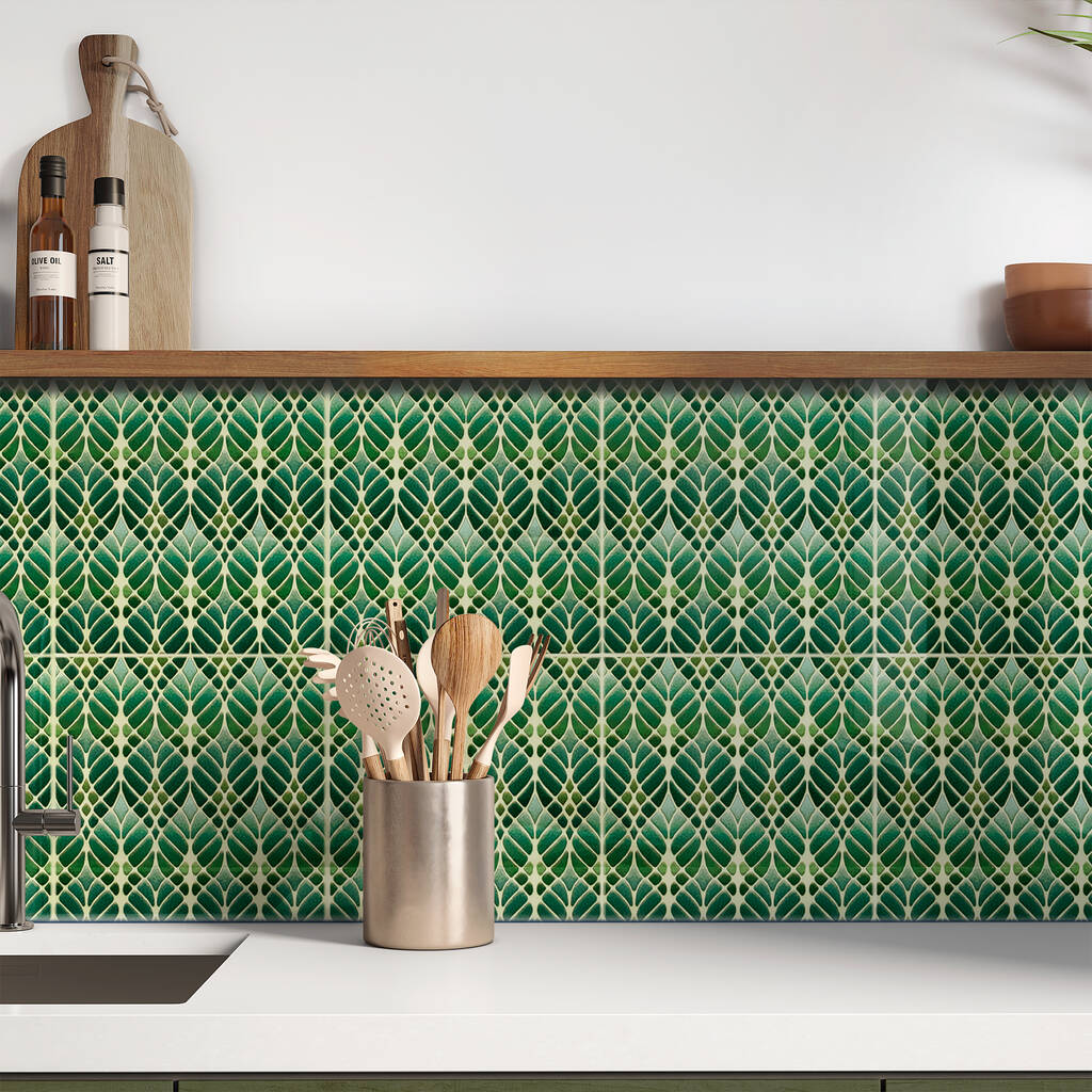• Art Nouveau Green Ceramic Handprinted Tile, thumbnail 6 of 11