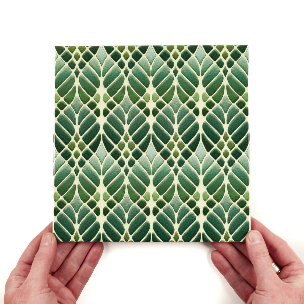 • Art Nouveau Green Ceramic Handprinted Tile, thumbnail 5 of 11