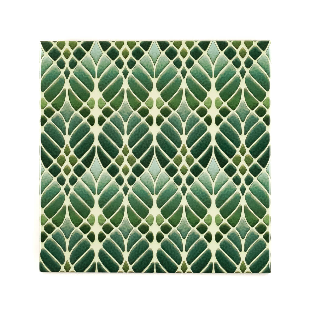 • Art Nouveau Green Ceramic Handprinted Tile, thumbnail 1 of 11