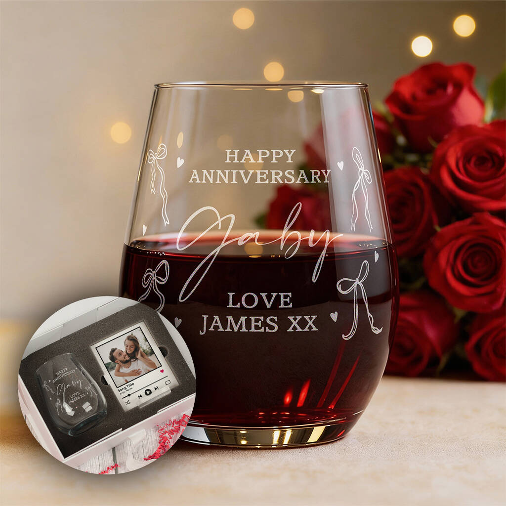 Bows And Hearts Wedding Anniversary Stemless Glass