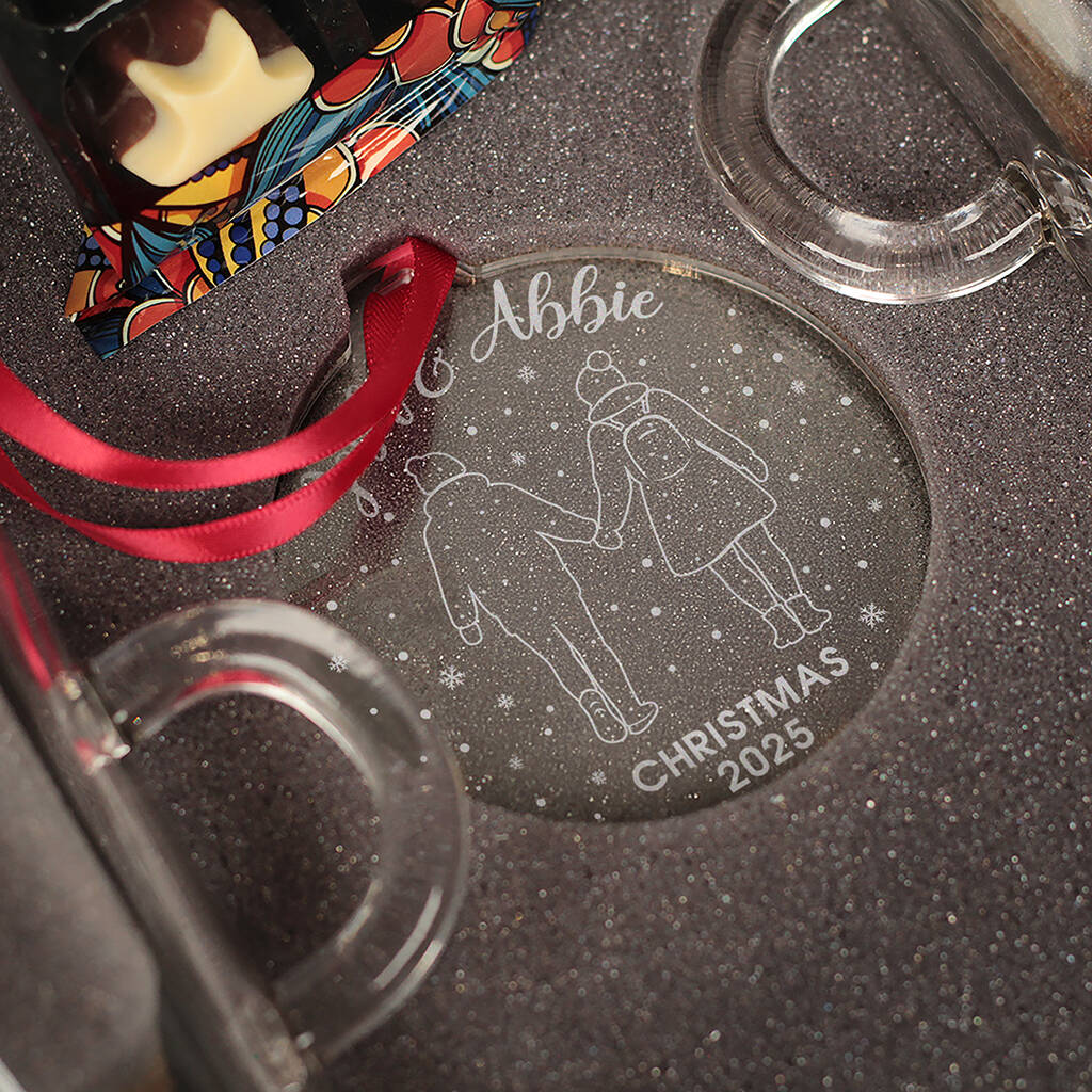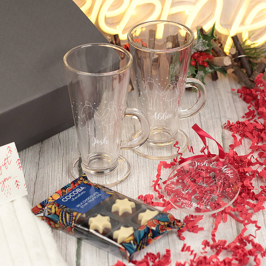 Christmas Couple In The Snow Pair Of Glass Hot Chocolate Coffee Latte Mugs