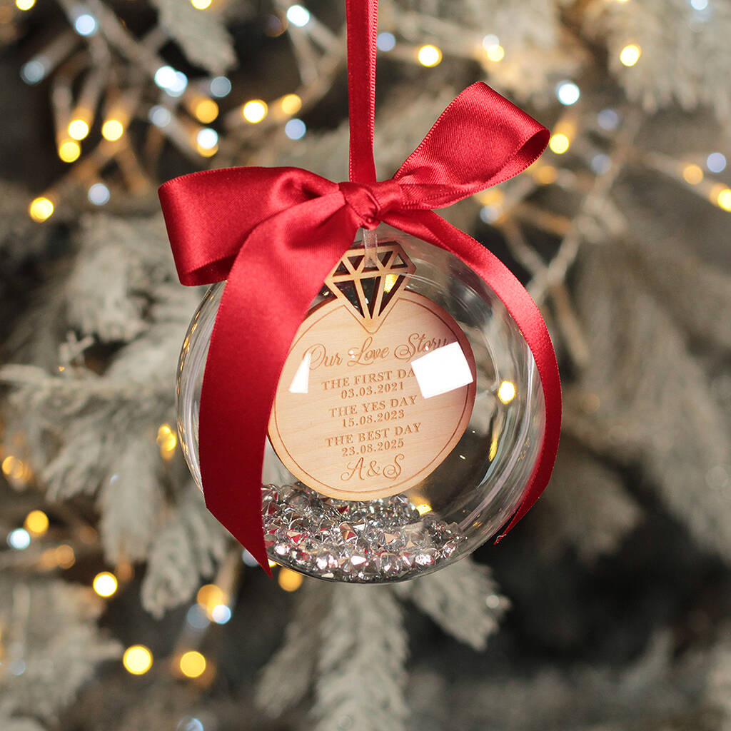 Love Story Met Engaged Married Wedding Ring Christmas Bauble