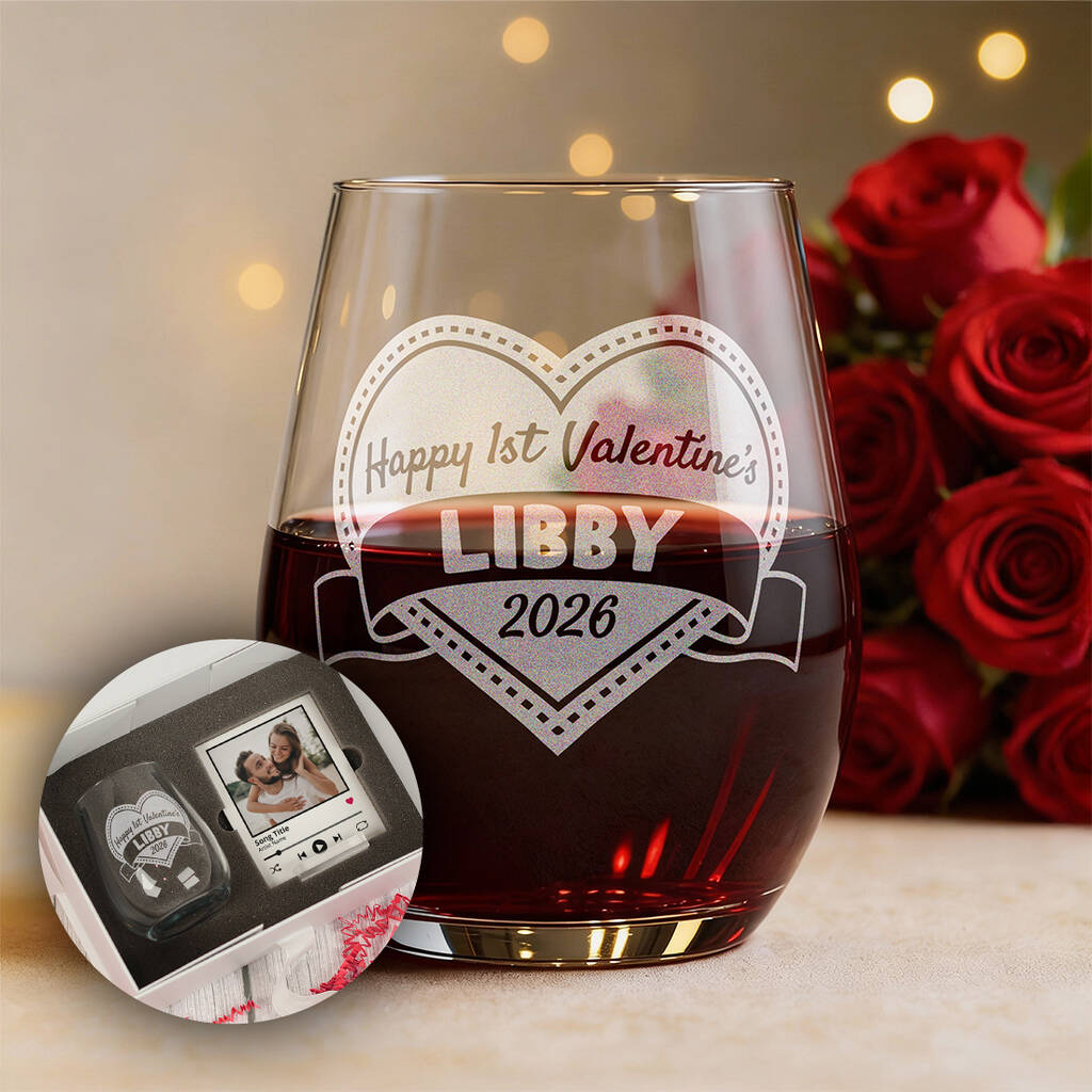 Personalised 1st Valentine's Day Stemless Glass