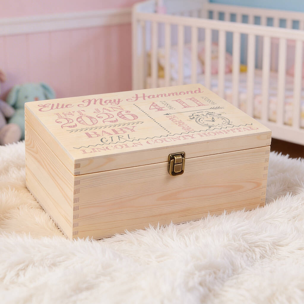Personalised Baby Boy Or Girl Typographic Large Wooden Keepsake Box