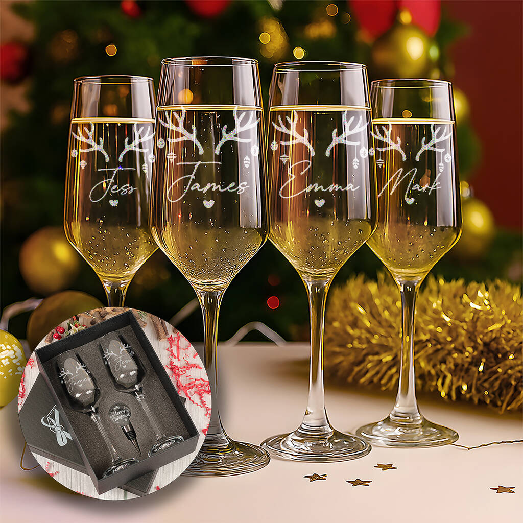 Create some festive Christmas cheer with these personalised Champagne Flutes and optional gift boxed set!
