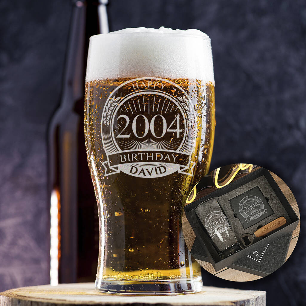 Personalised Happy Birthday Year Pint Glass And Gift Set