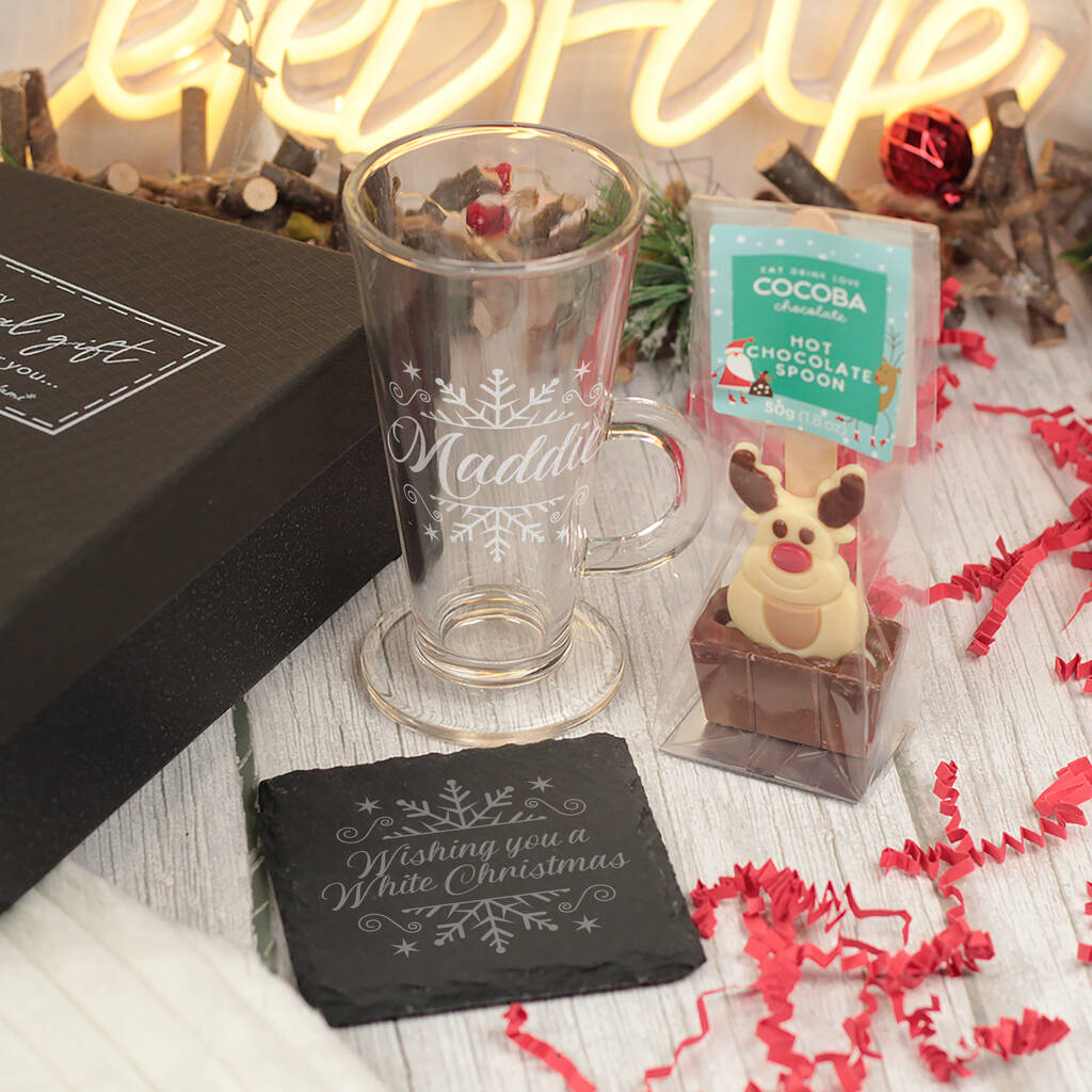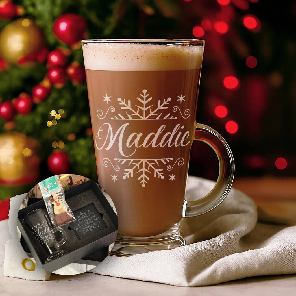 The glass latte style mug is laser engraved for durability and is dishwasher safe.
