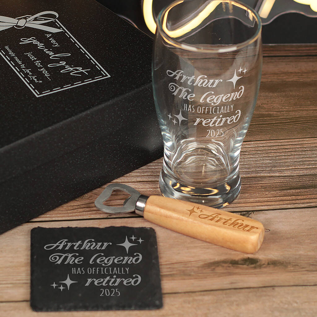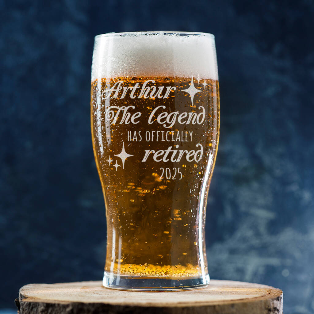 Raise a glass to retirement with this stunning personalised Pint glass!