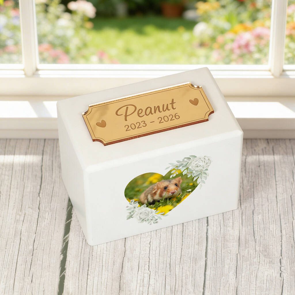 White Wooden Floral Heart Photo Pet Ashes Box