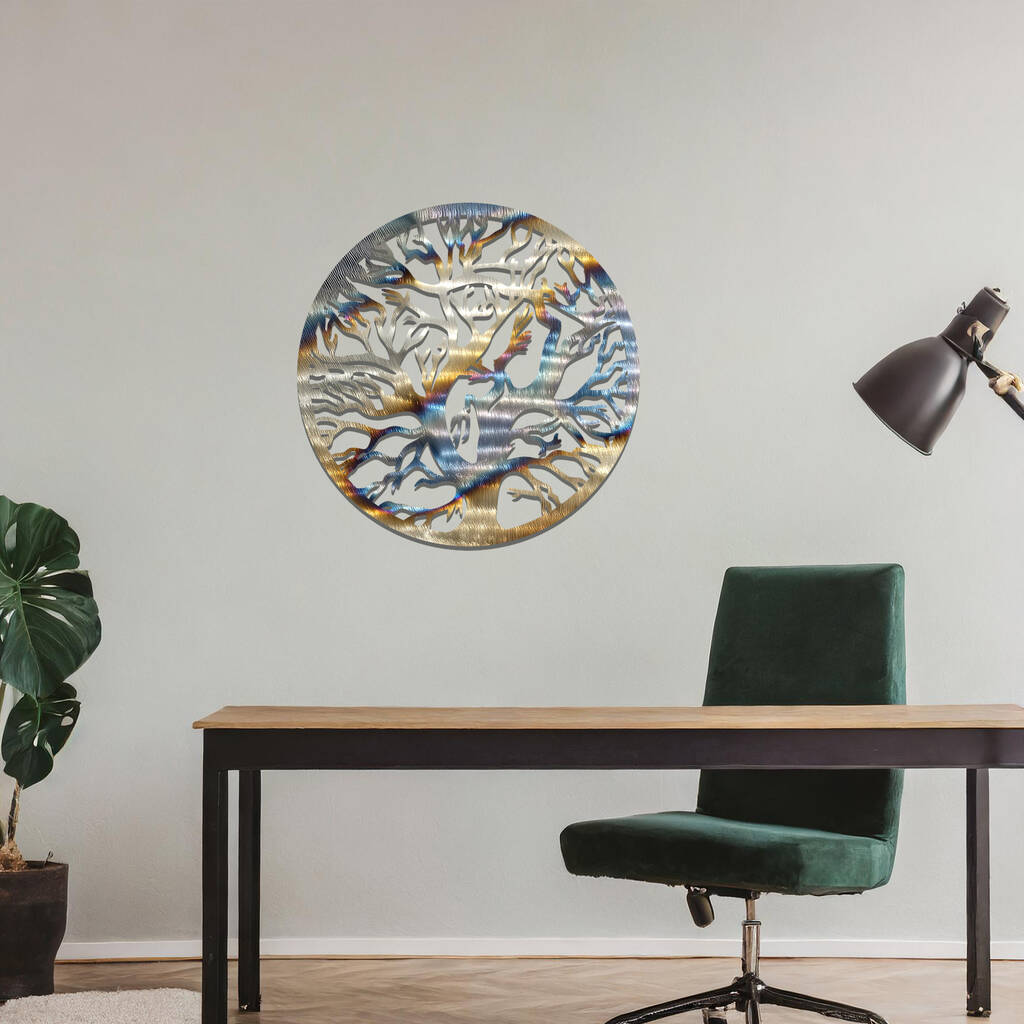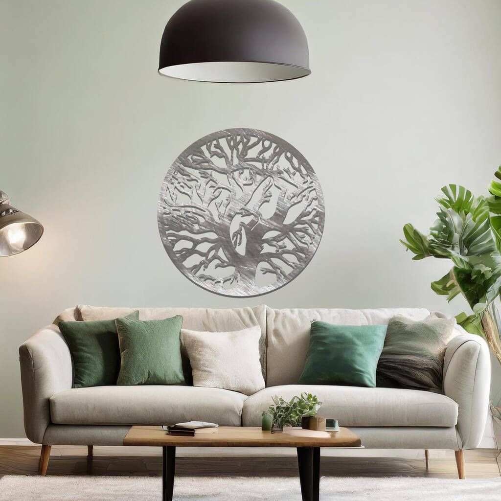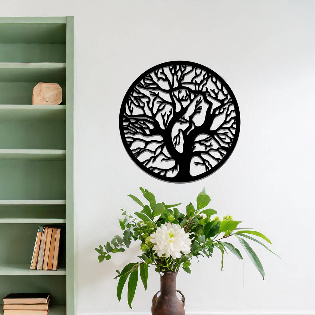 Circular Metal Tree Silhouette Wall Art Sculpture For Living Room
