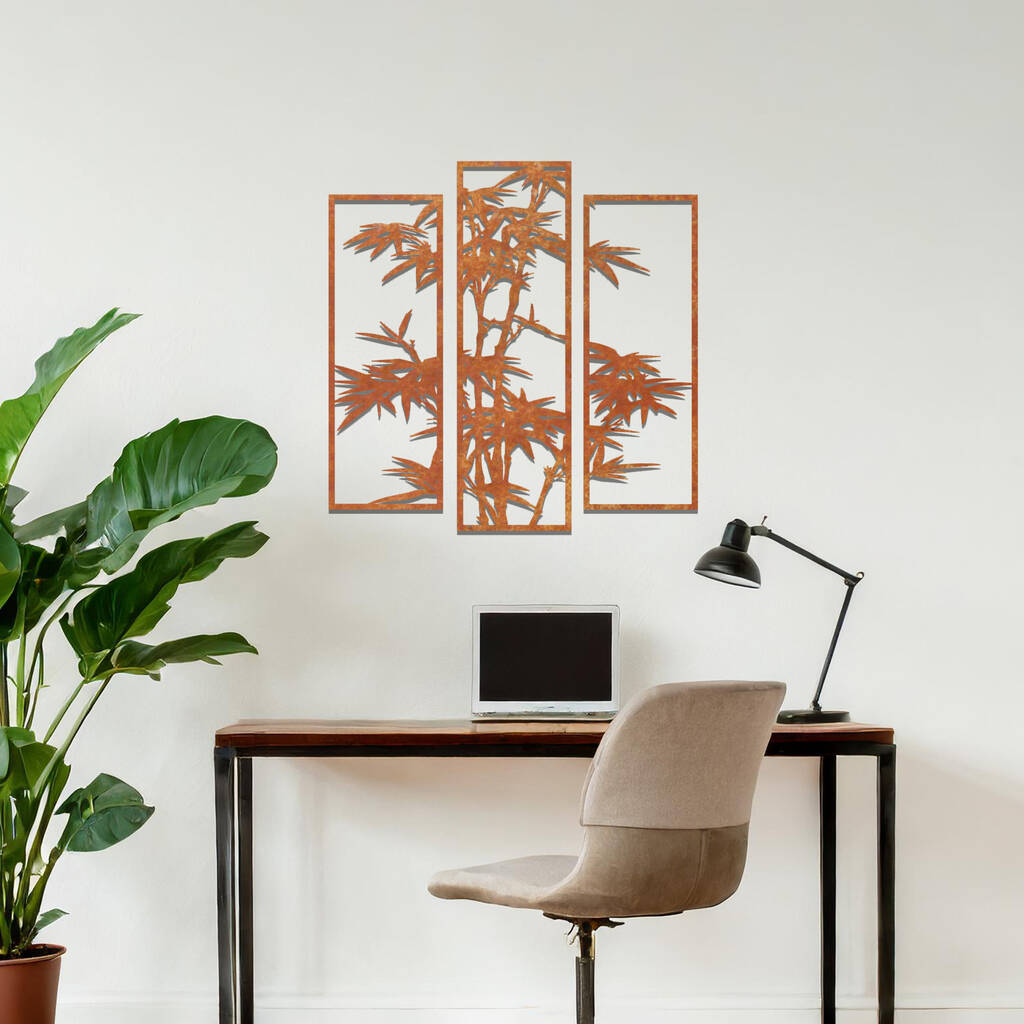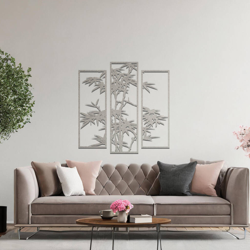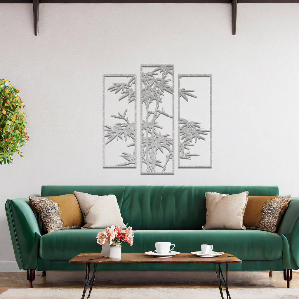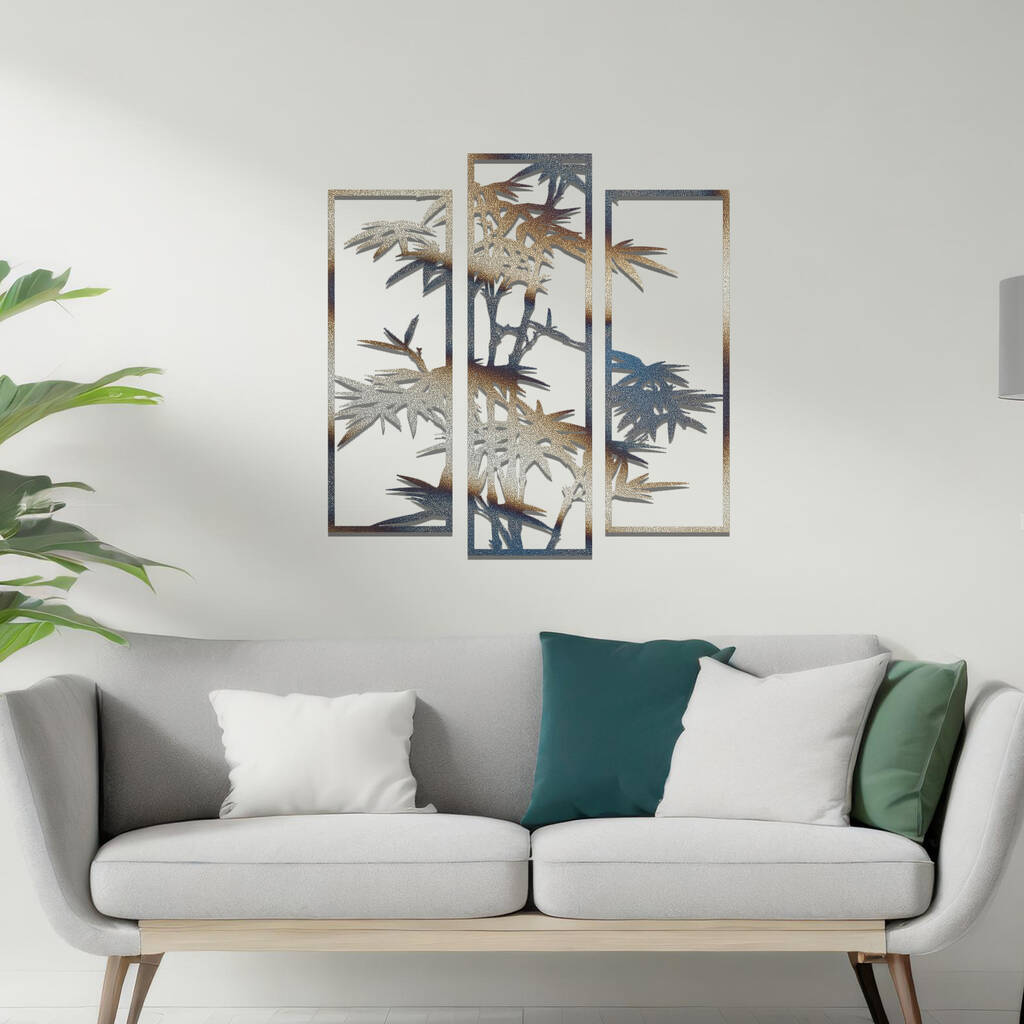 Contemporary Metal Bamboo Triptych Wall Art For Living Room Bedroom Or Hallway
