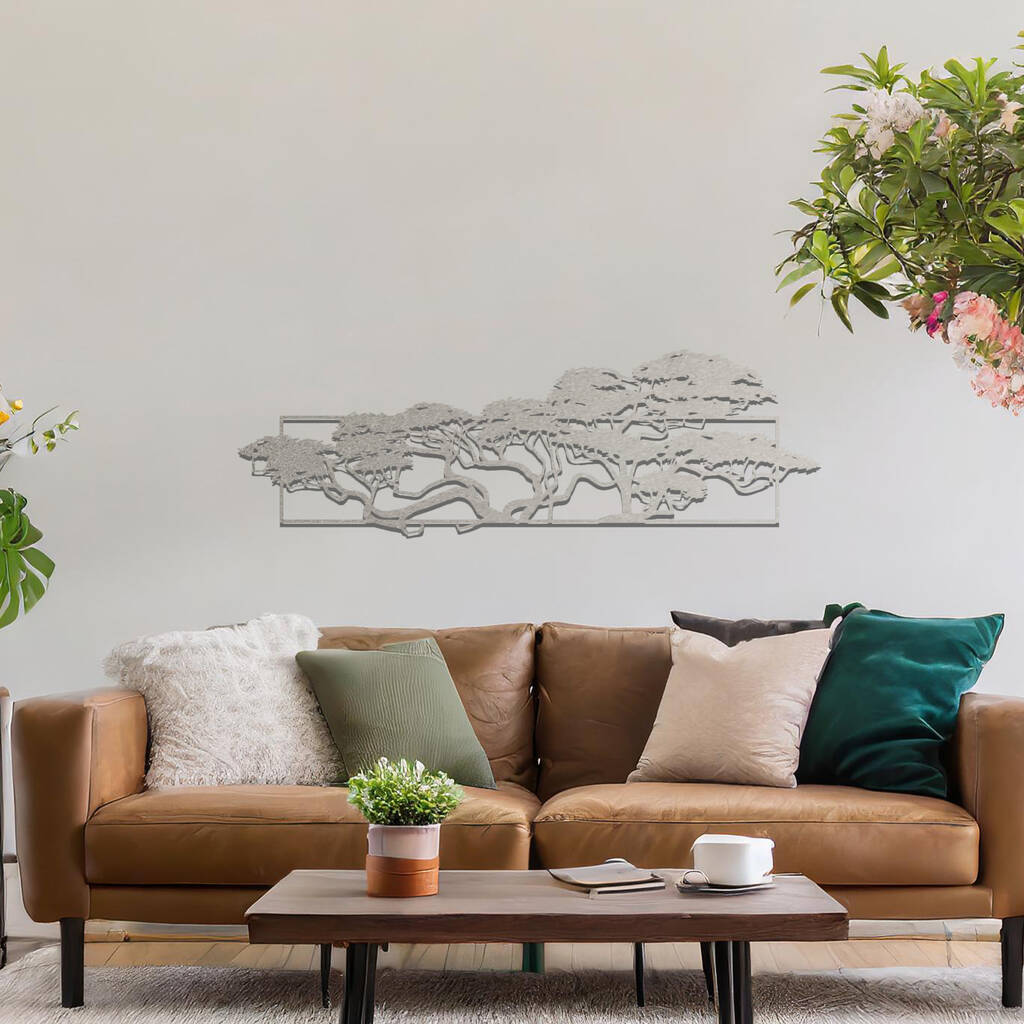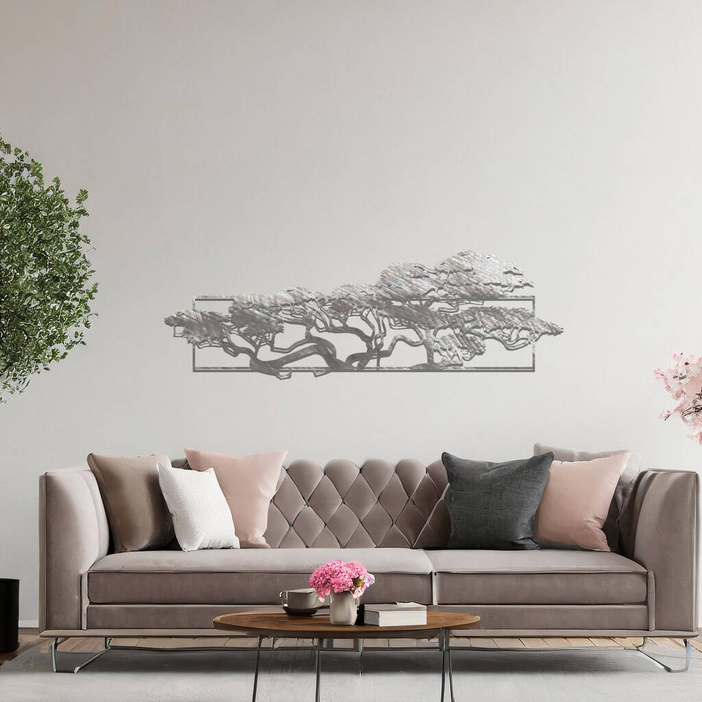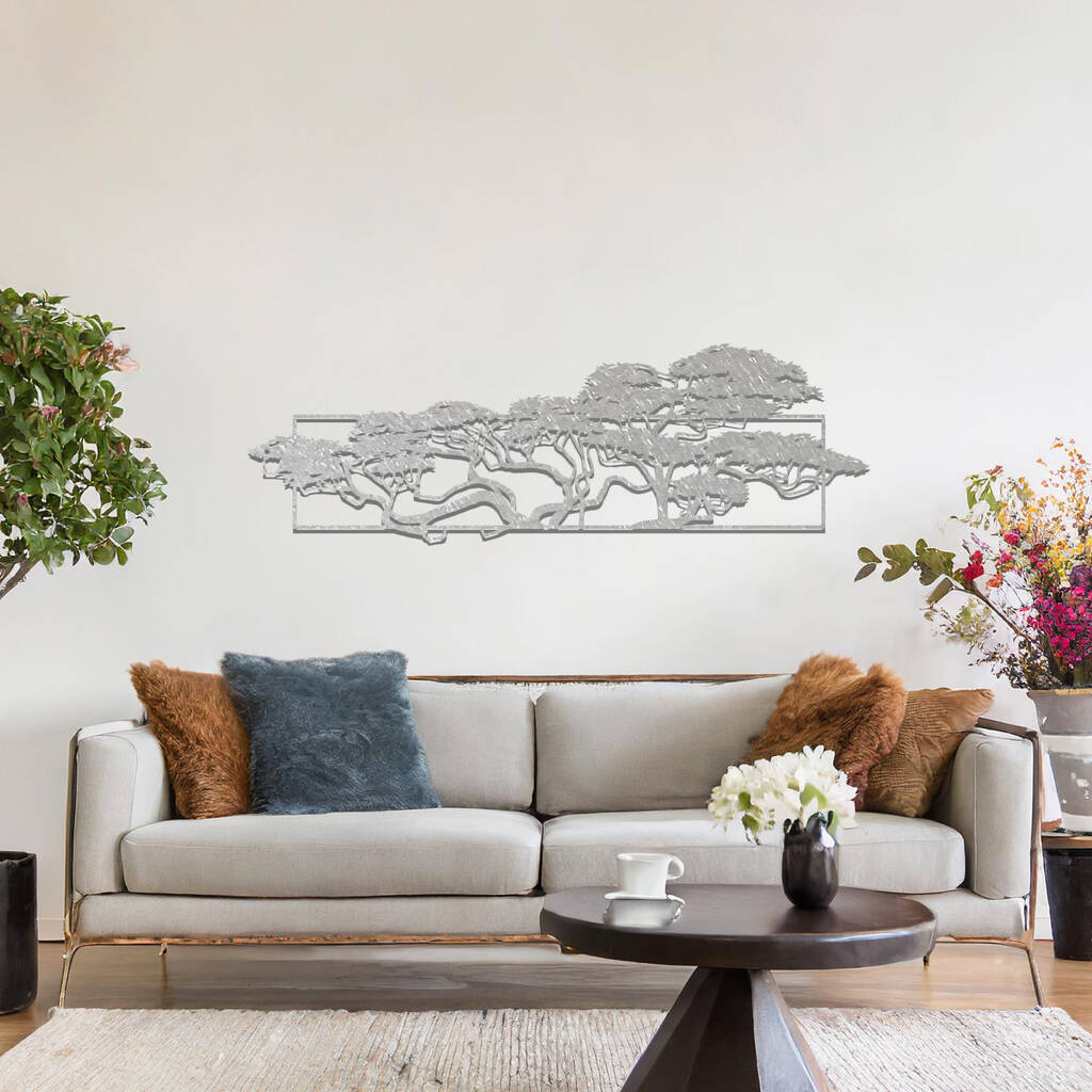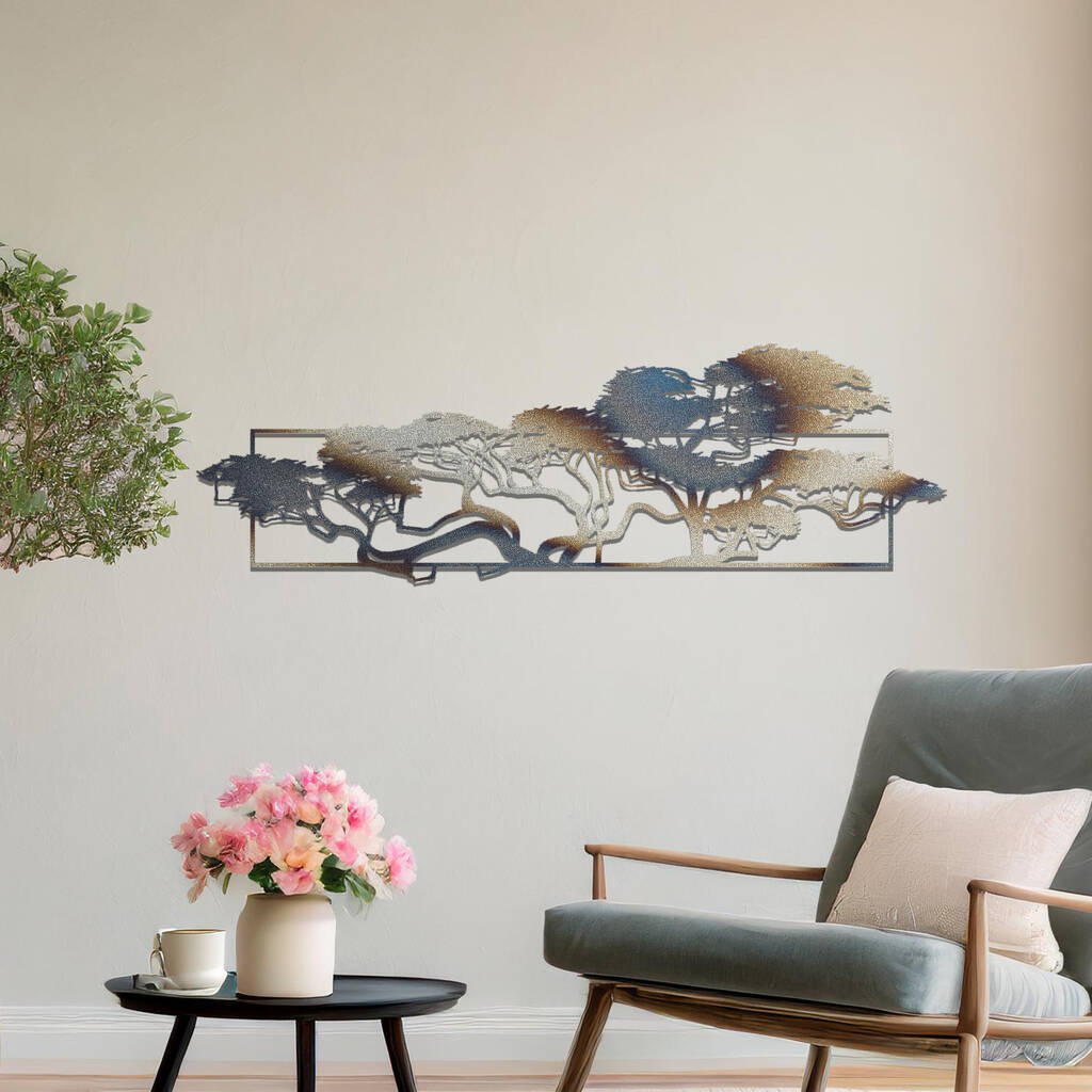 Elegant Horizontal Metal Tree Silhouette Wall Artwork For Modern Interiors
