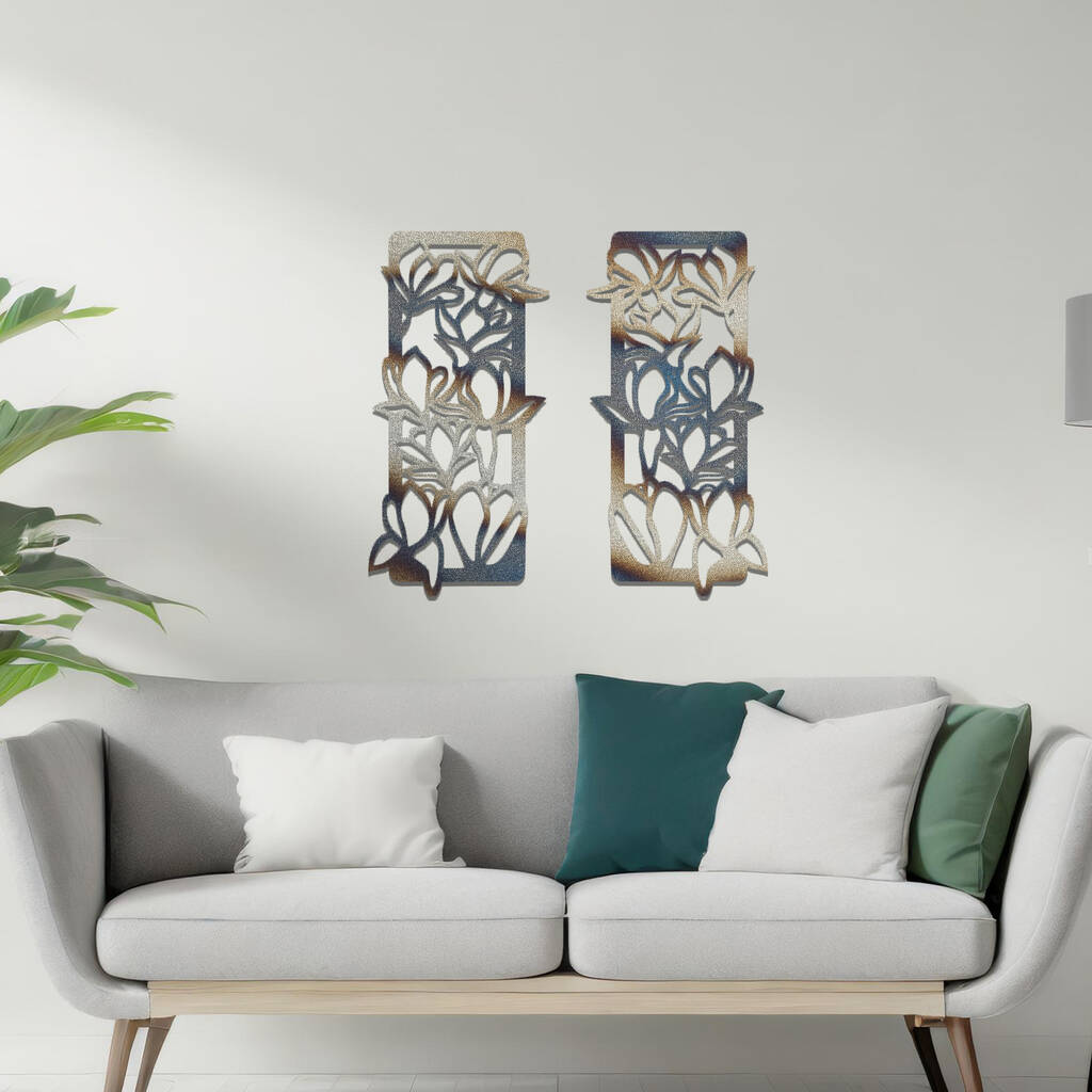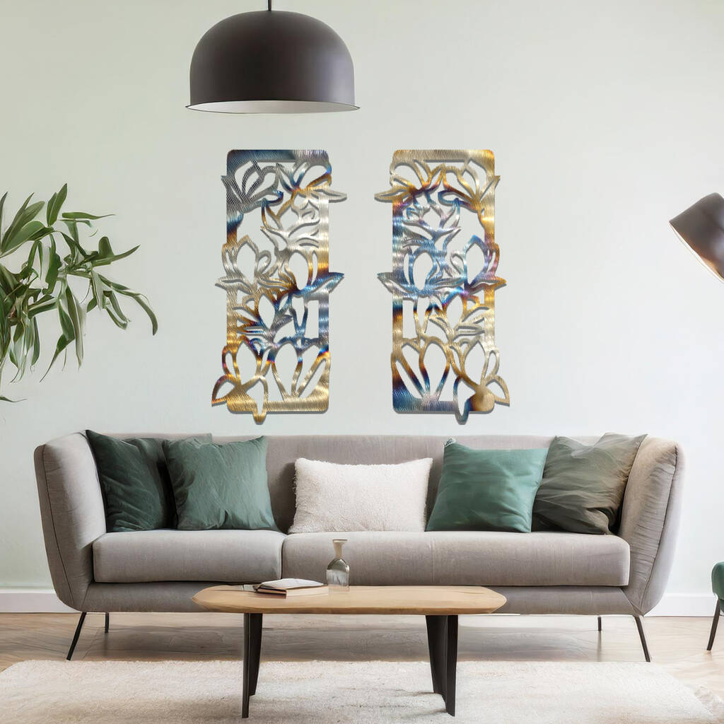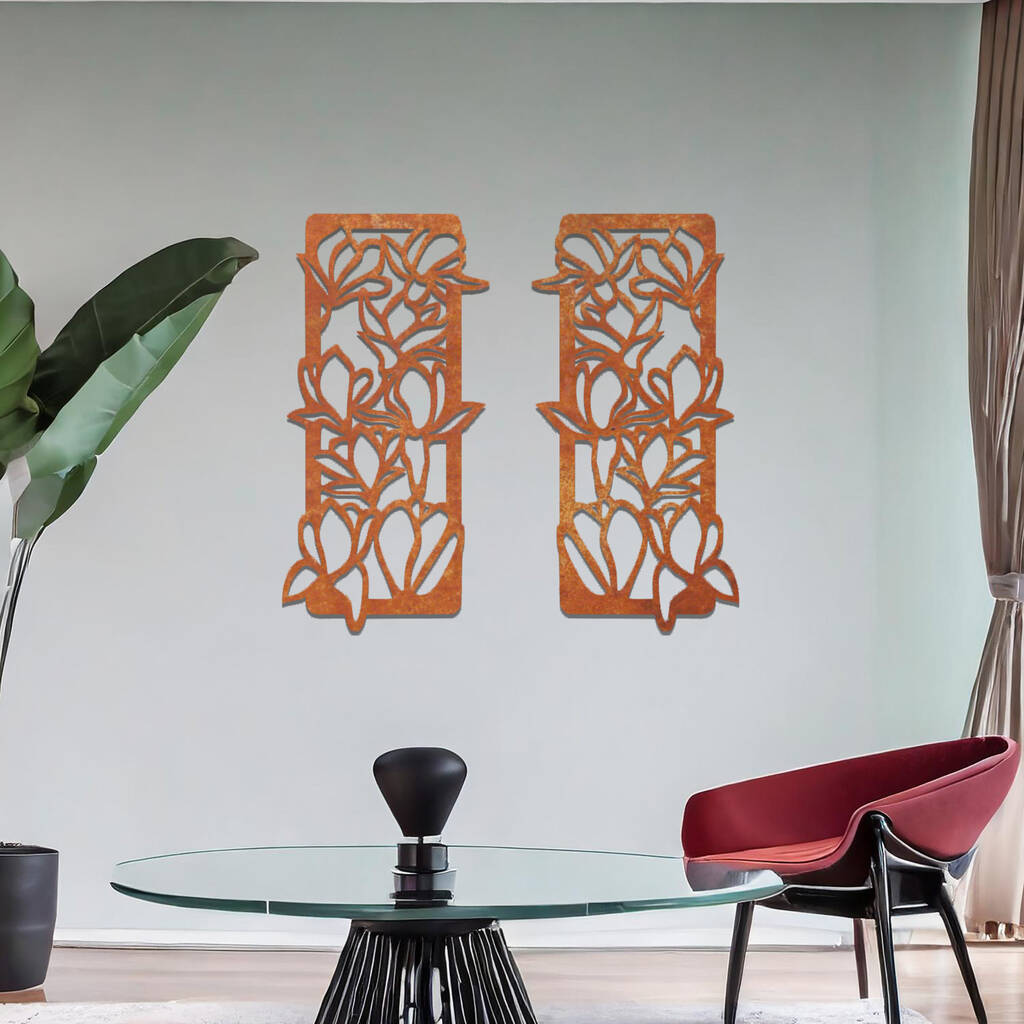 Elegant Metal Floral Vine Wall Art Panel Set For Living Room Or Hallway Decor
