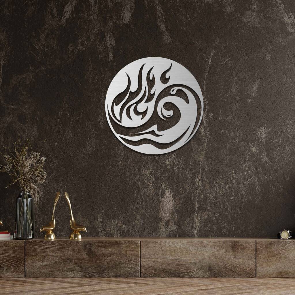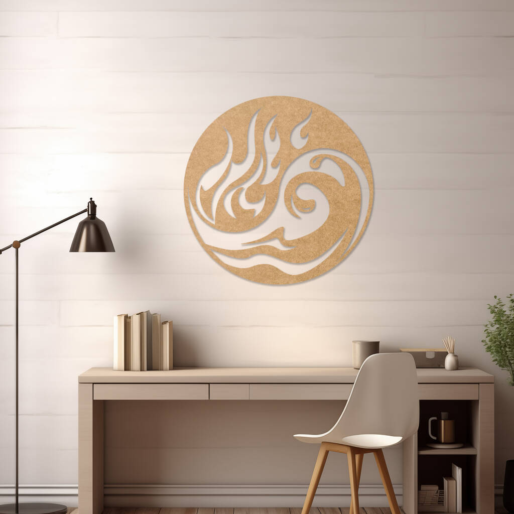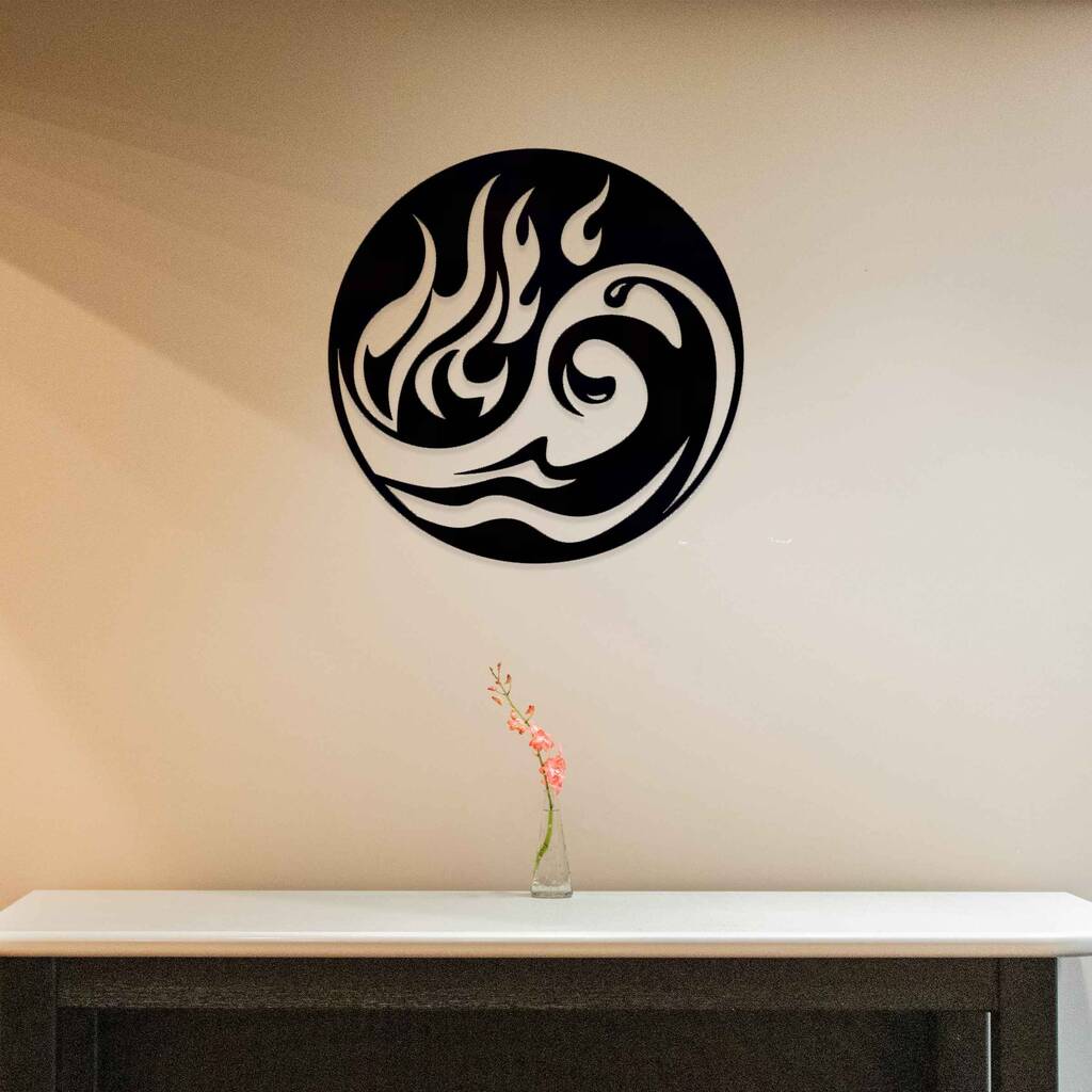 Handmade Wooden Fire And Water Wall Art For Modern Home Decor