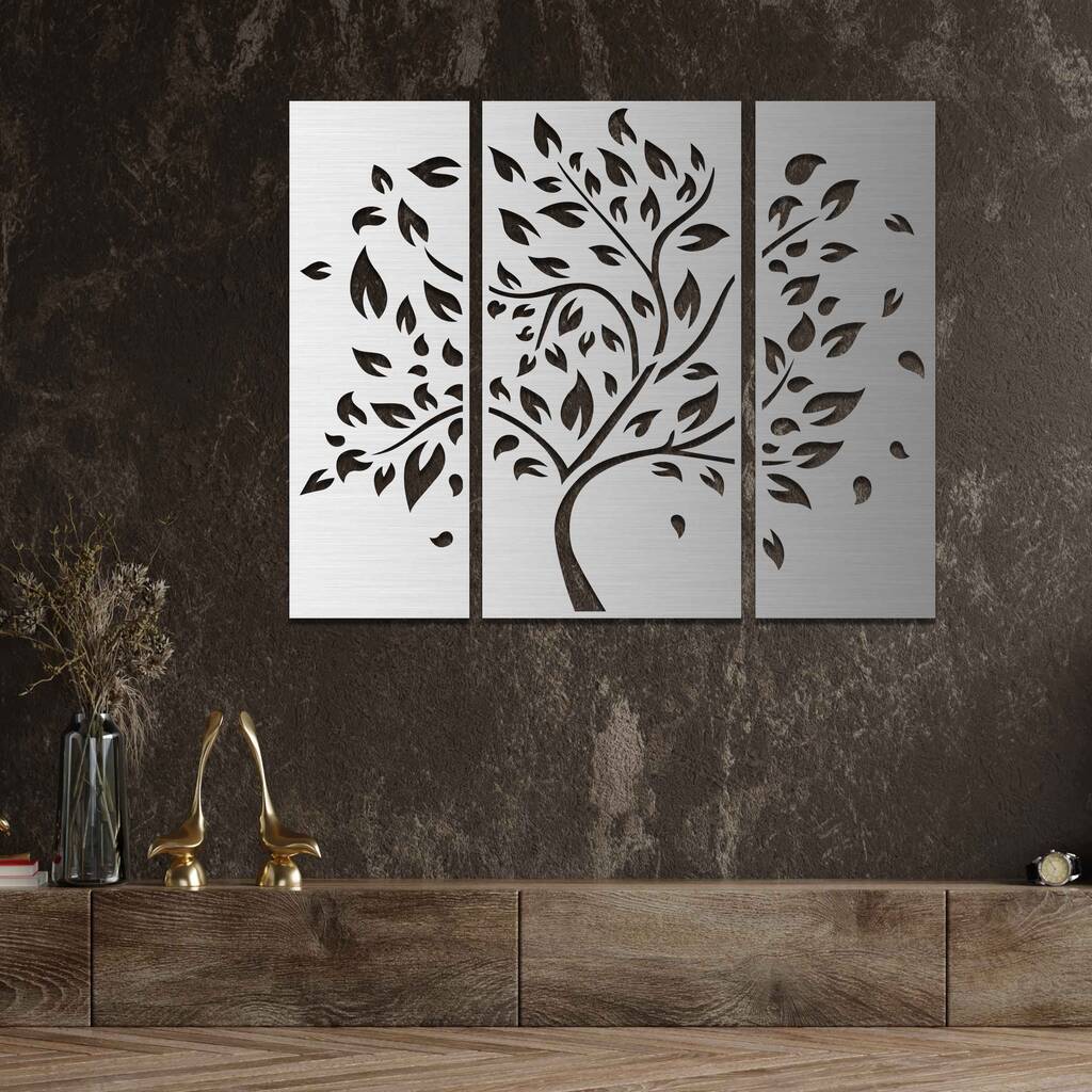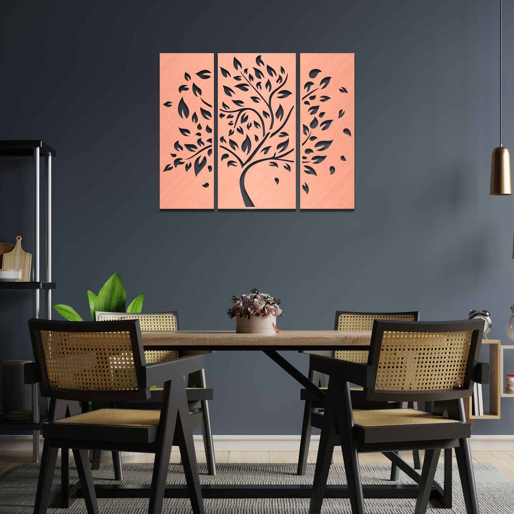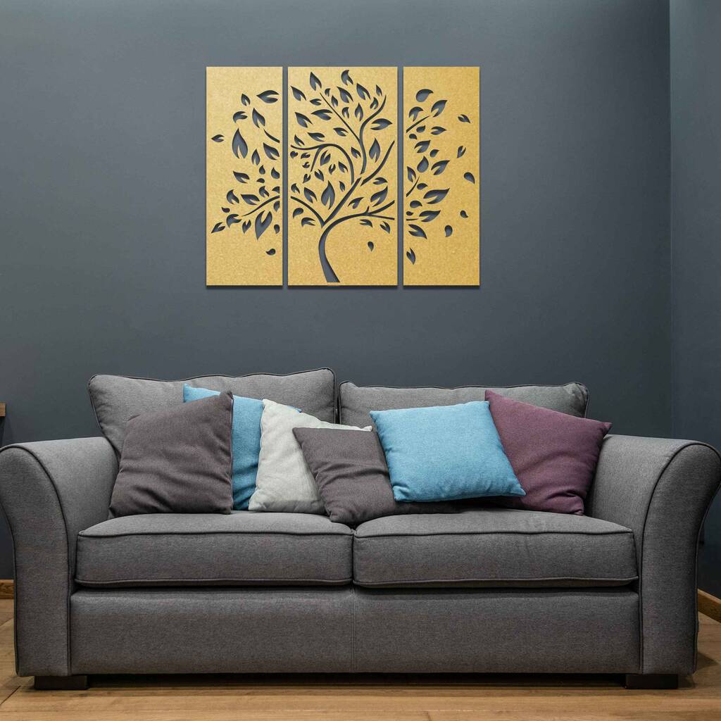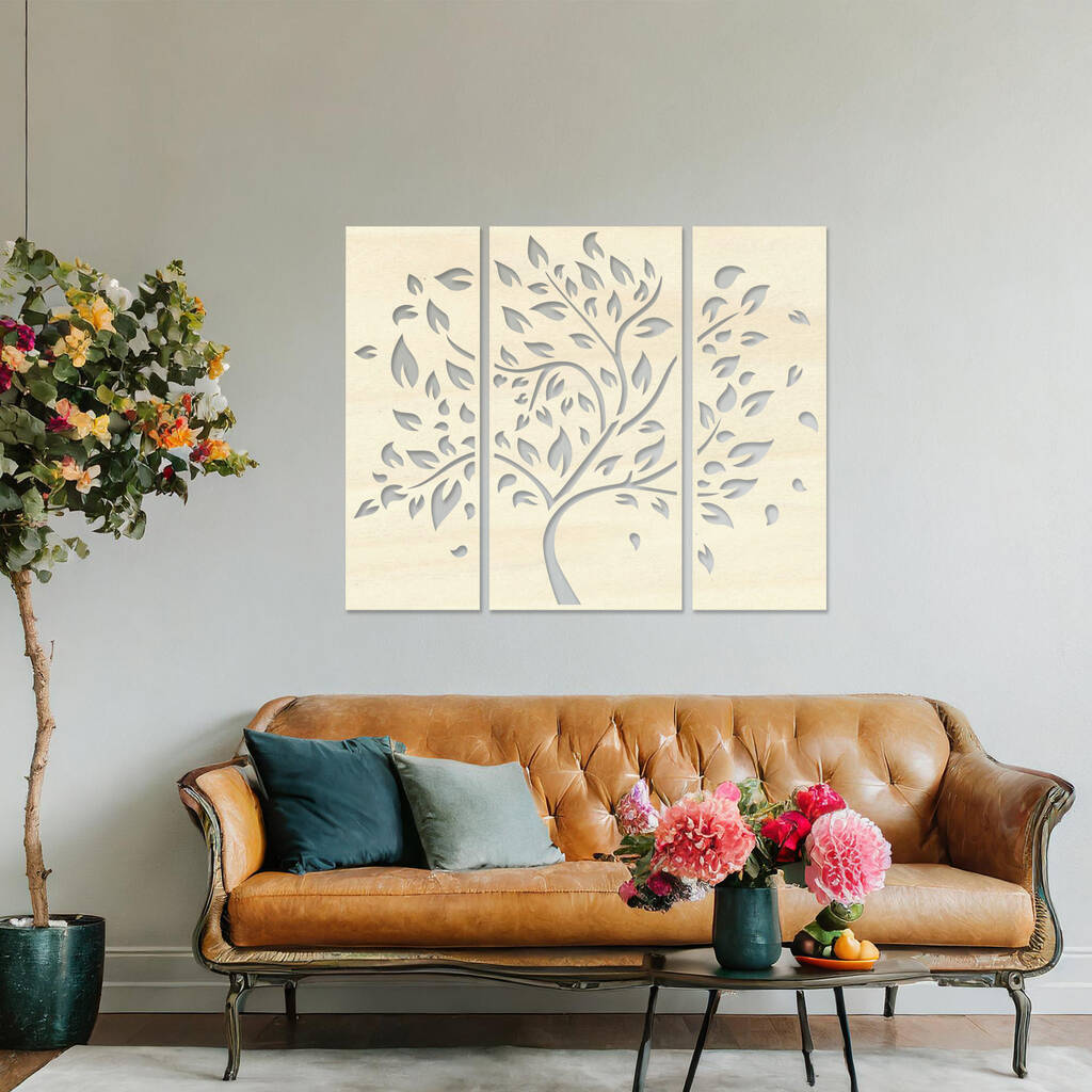 Handmade Wooden Tree Wall Art Triptych For Living Room Decor