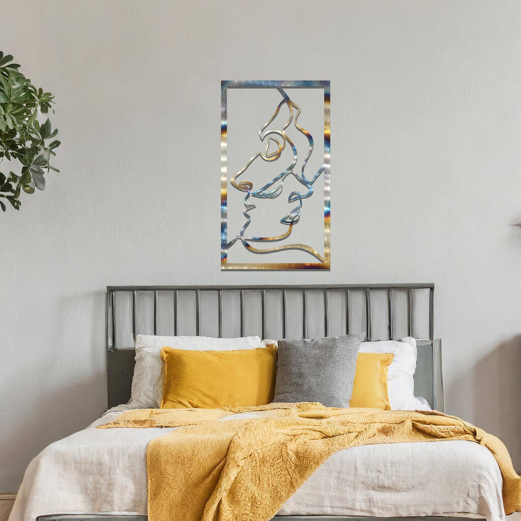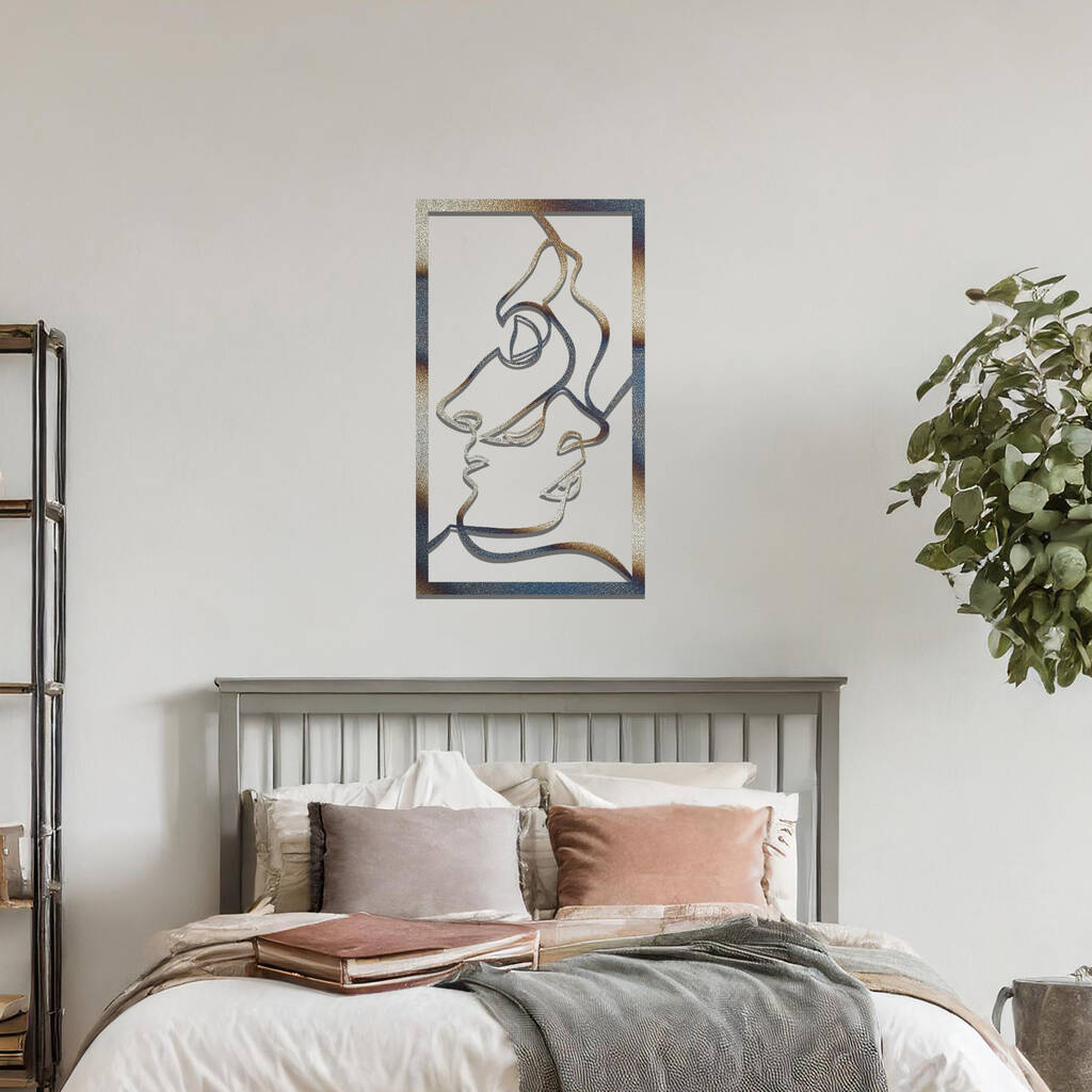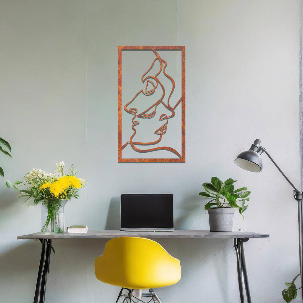 This handmade metal wall artwork features an elegant abstract face created with continuous flowing lines framed within a clean rectangular border. The minimalist yet expressive design brings a sense of emotion, creativity, and modern style to living rooms, offices, studios, or calm interior spaces. Expertly crafted with precision and care, it offers a striking focal point that complements contemporary, minimalist, and artistic home decor. A thoughtful gift for design lovers, creatives, or anyone who enjoys bold wall art with personality.