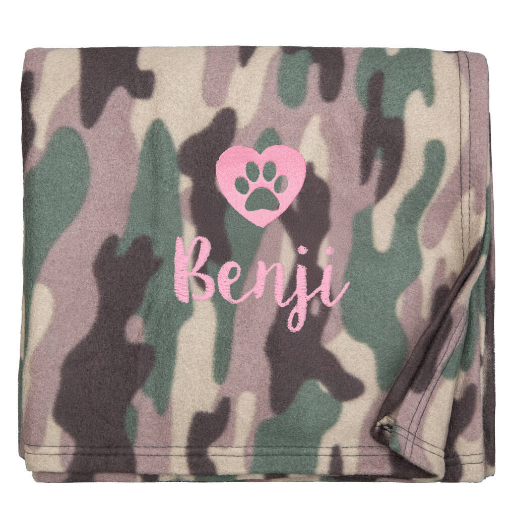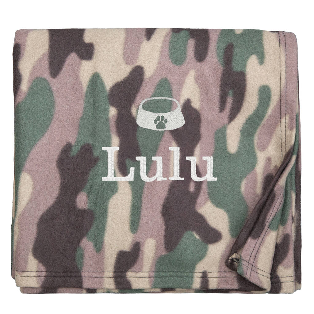 A soft and comfortable personalised camouflage pet blanket your you and your dog to enjoy. Great value and super practical as it's machine washable!