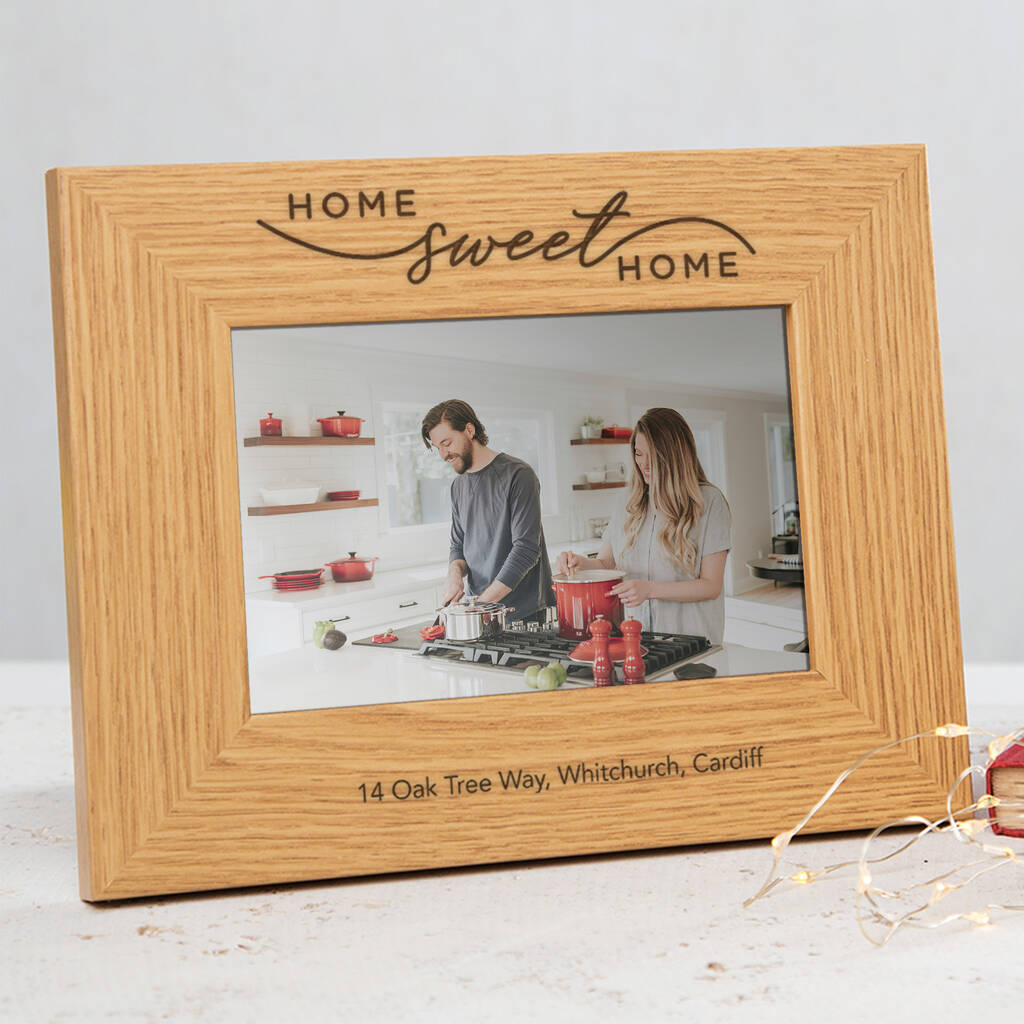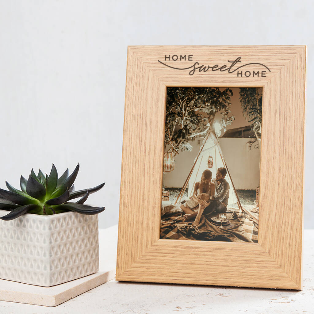 Custom engraved with the sweet quote 'Home Sweet Home' in a stunning script style font, this unique photo frame is sure to be well appreciated as a new home gift to display in the living room.