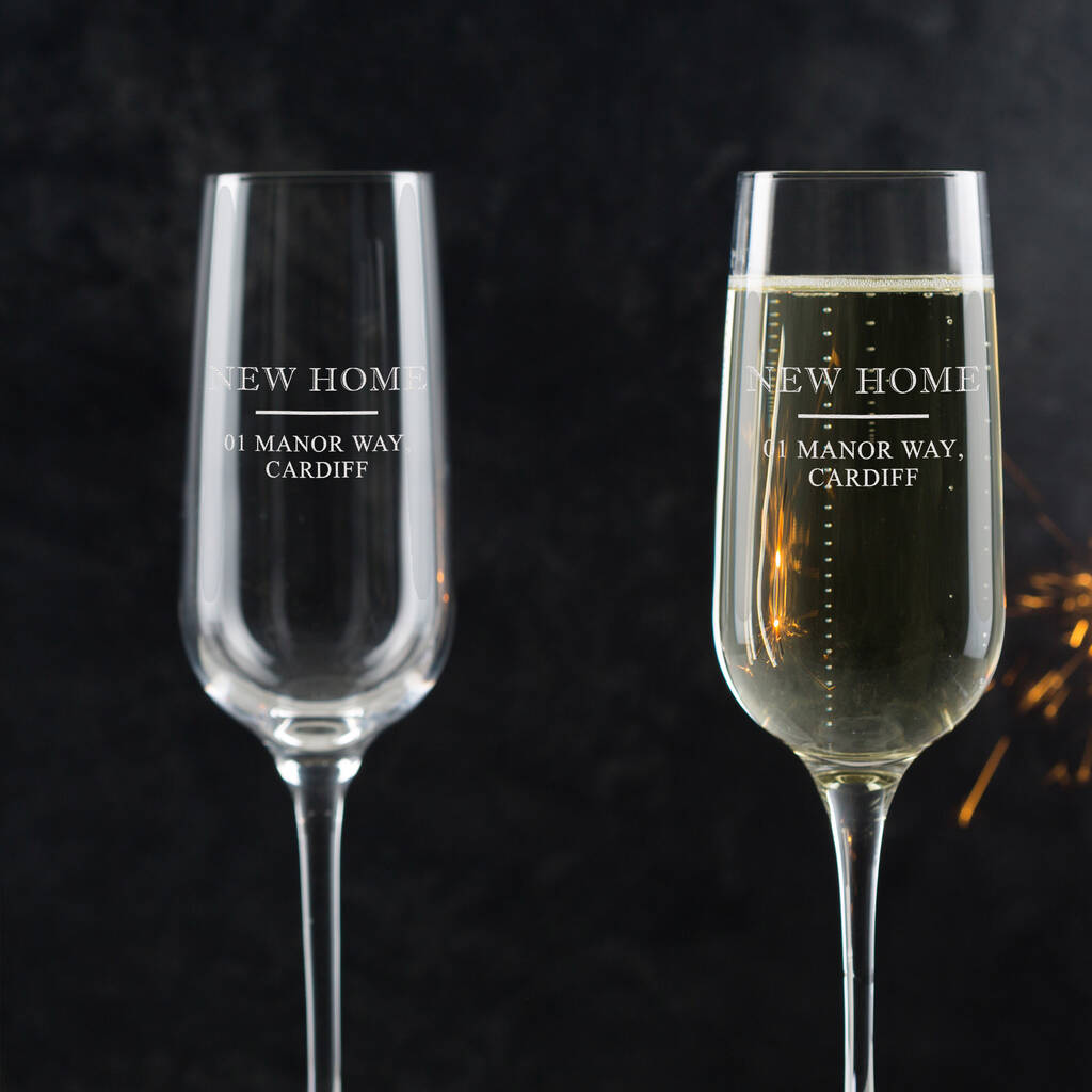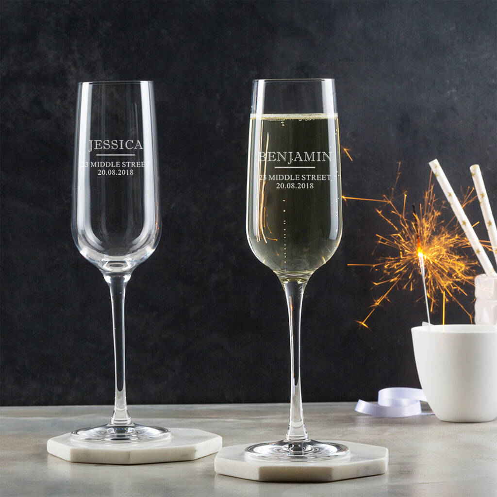 Personalised Engraved Champagne Flute Pair Housewarming Gift