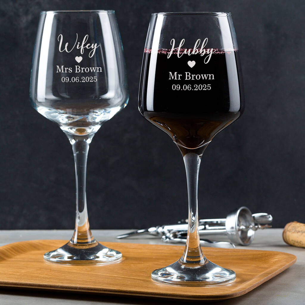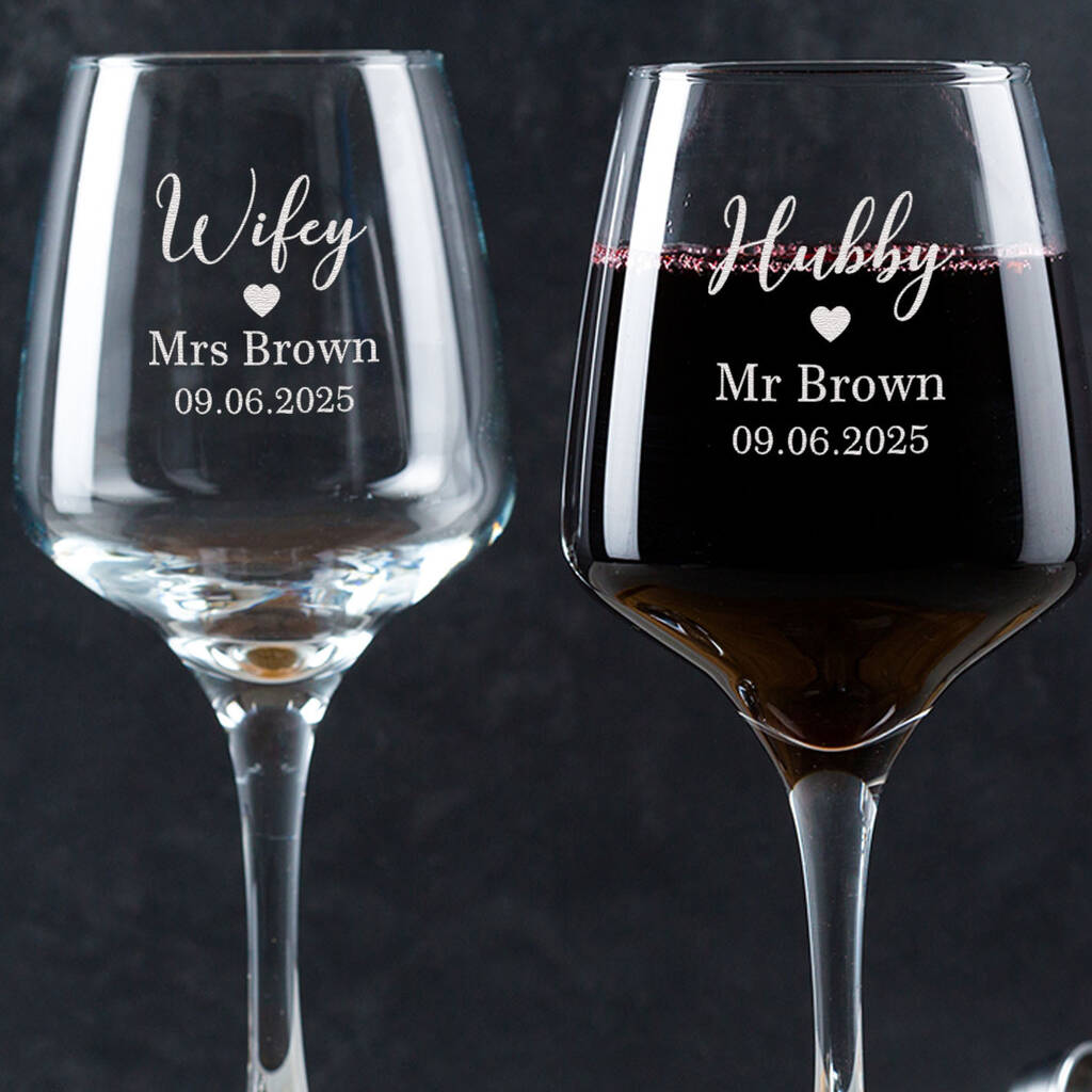 Personalised Engraved Wedding Wine Glasses For Bride Groom