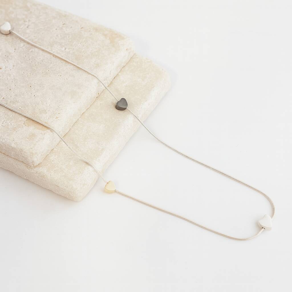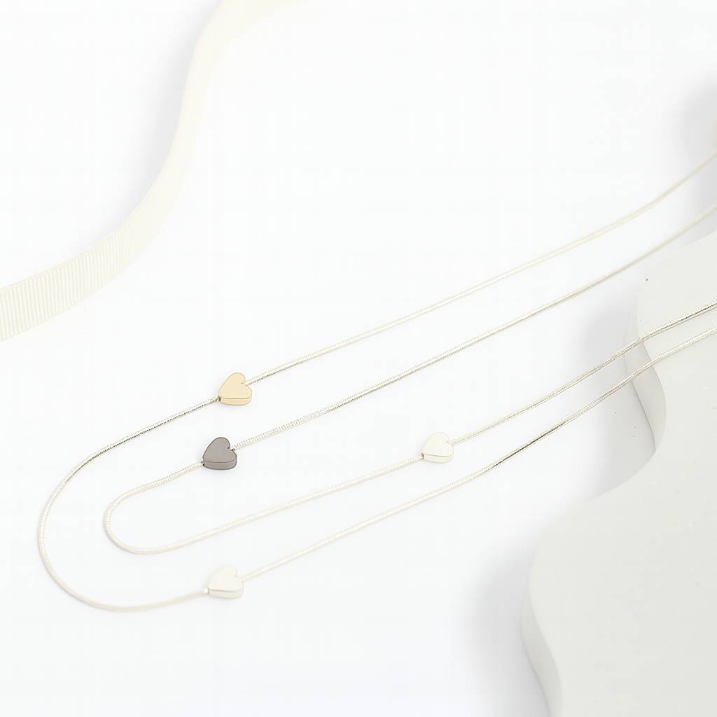 Long Heart Shaped Confetti Beaded Long Chain Necklace