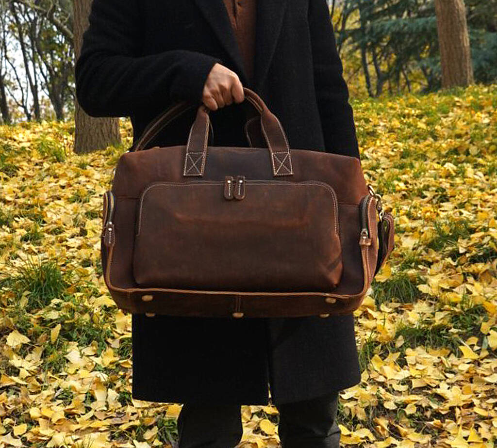 Genuine Leather Weekend Bag With Leather Straps Detail