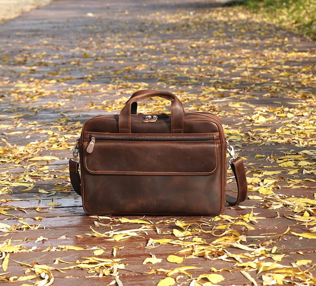 Online Exclusive Genuine Leather Briefcase With Large Front Pockets