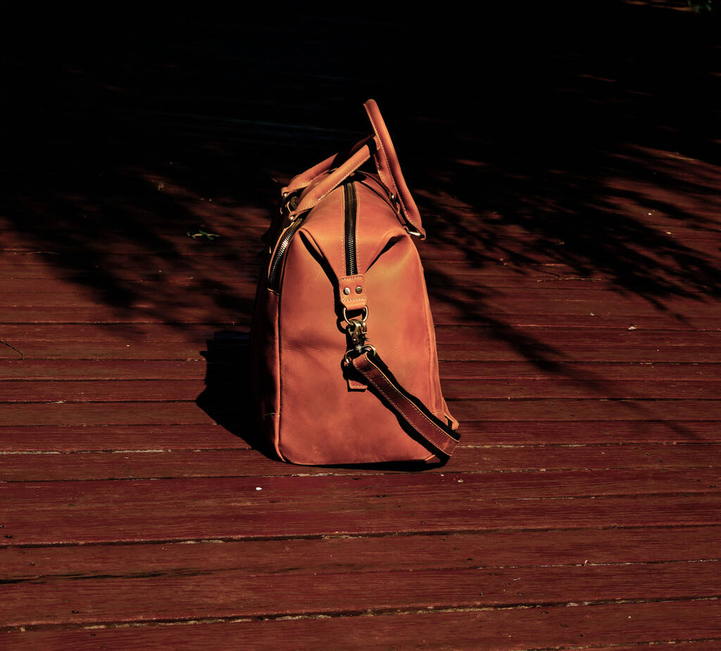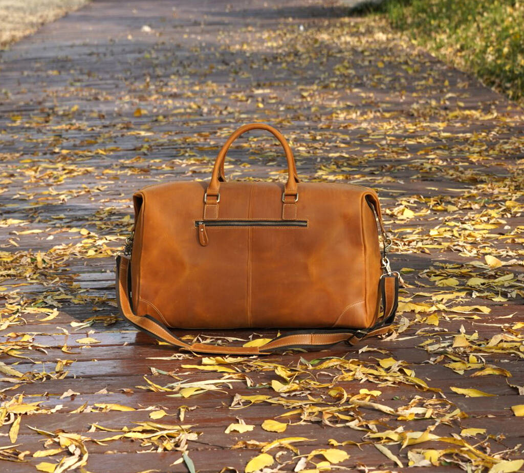 Stitched Detail Genuine Leather Holdall Vintage Look