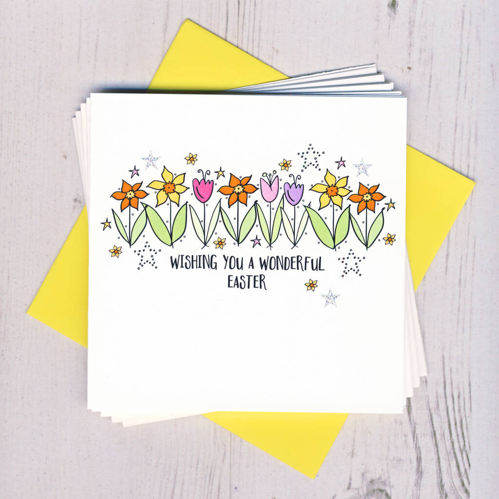 Pack Of Five Spring Flowers Easter Cards
