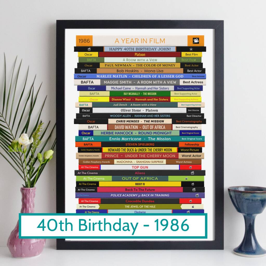40th Birthday Personalised Print Movie Gift 1986
