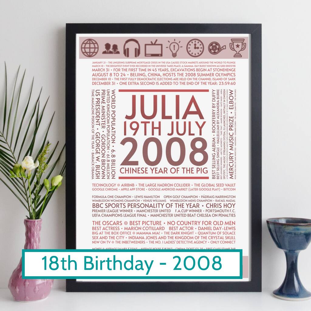 Personalised 18th Birthday Print Year Facts 2008 Gift