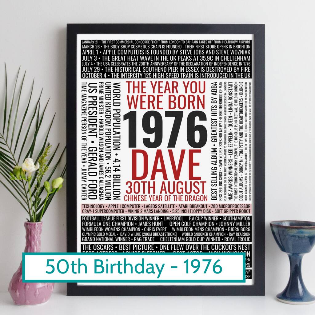 Personalised 50th Birthday Print Year Facts 1976 Gift