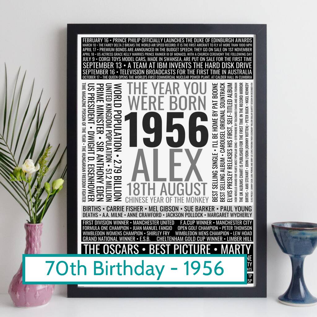 Personalised 70th Birthday Print Gift Year Facts 1956