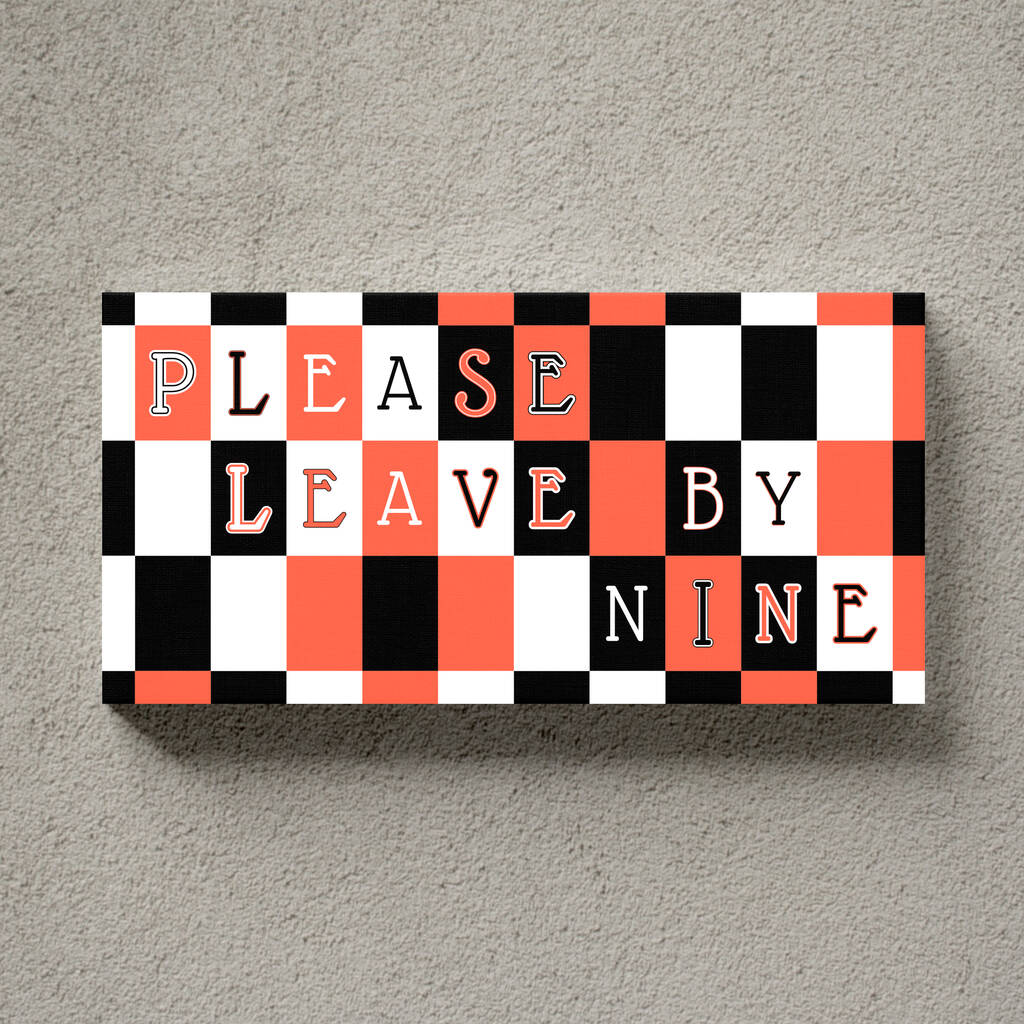 Striking PLEASE LEAVE BY NINE print featuring stylish lettering in a choice of fonts and colours. Personalise it with your own words if you prefer!